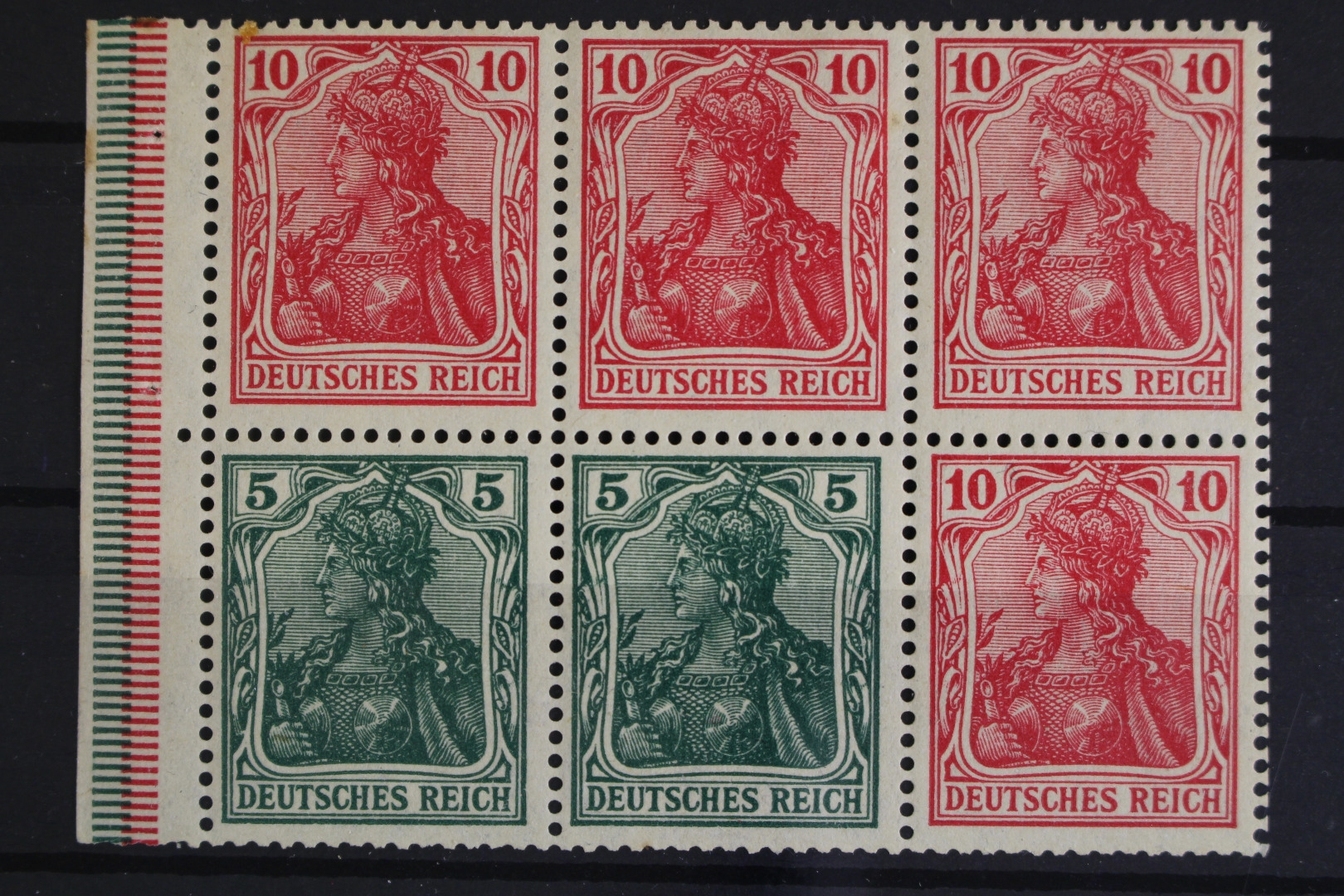 5 und 10 Pf. Germania, bessere Type, bräunliche Flecke, Falzrest.