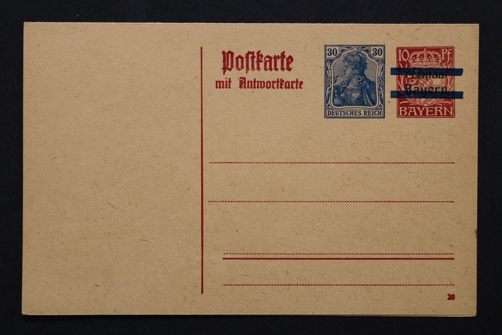 30 Pf. Germania neben 10 Pf. Bayern, mit Antwortkarte