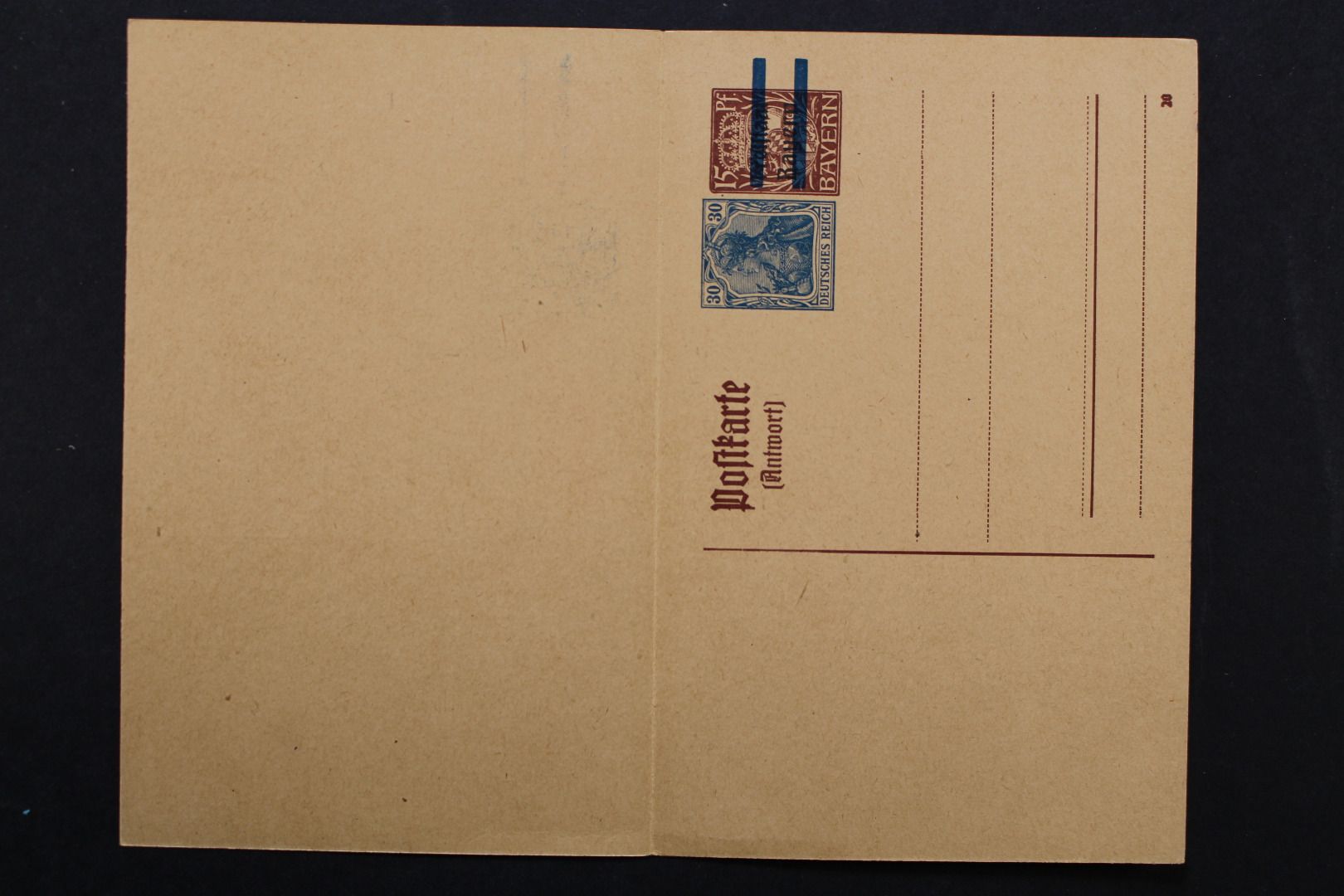30 Pf. Germania neben 15 Pf. Bayern, mit Antwortkarte