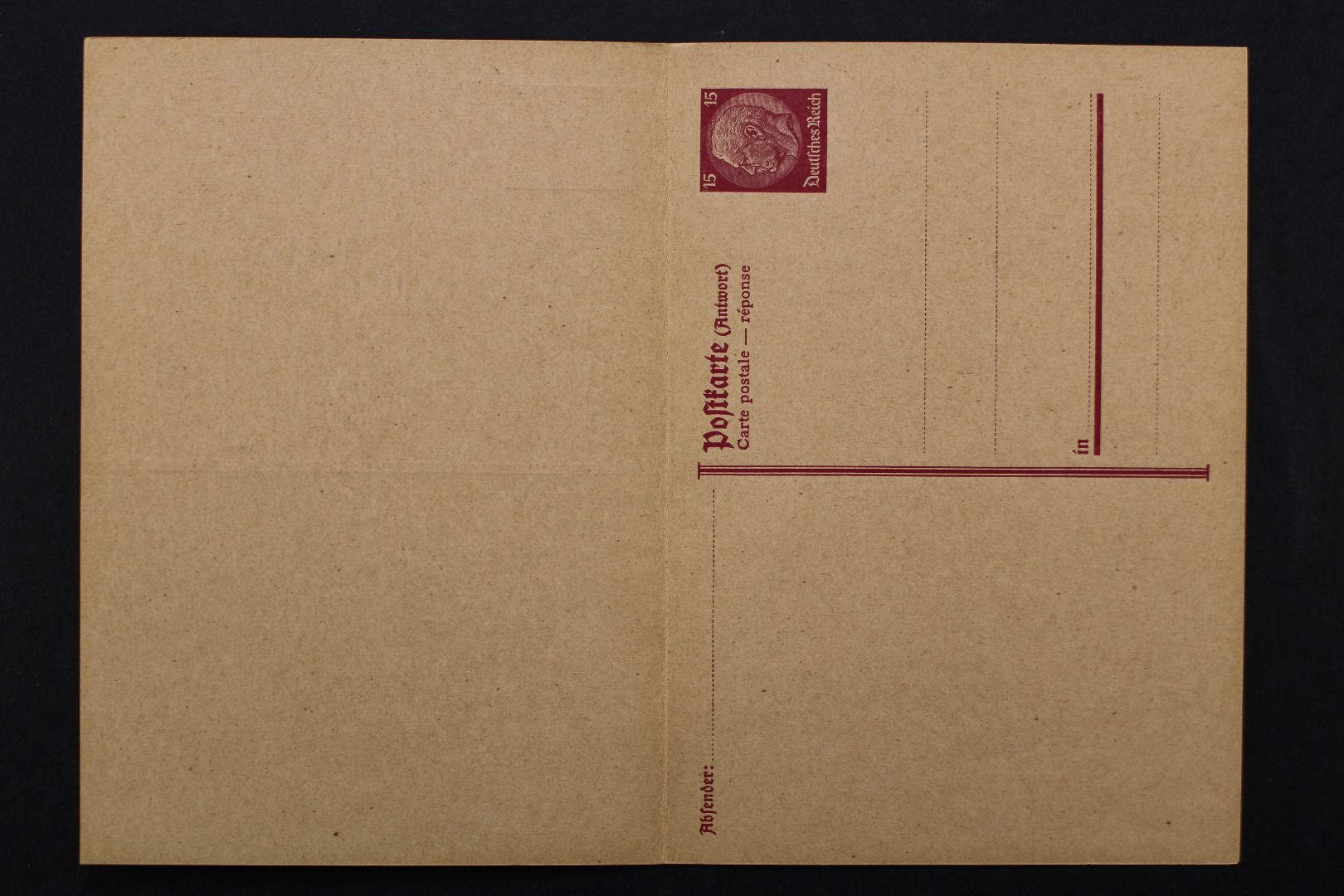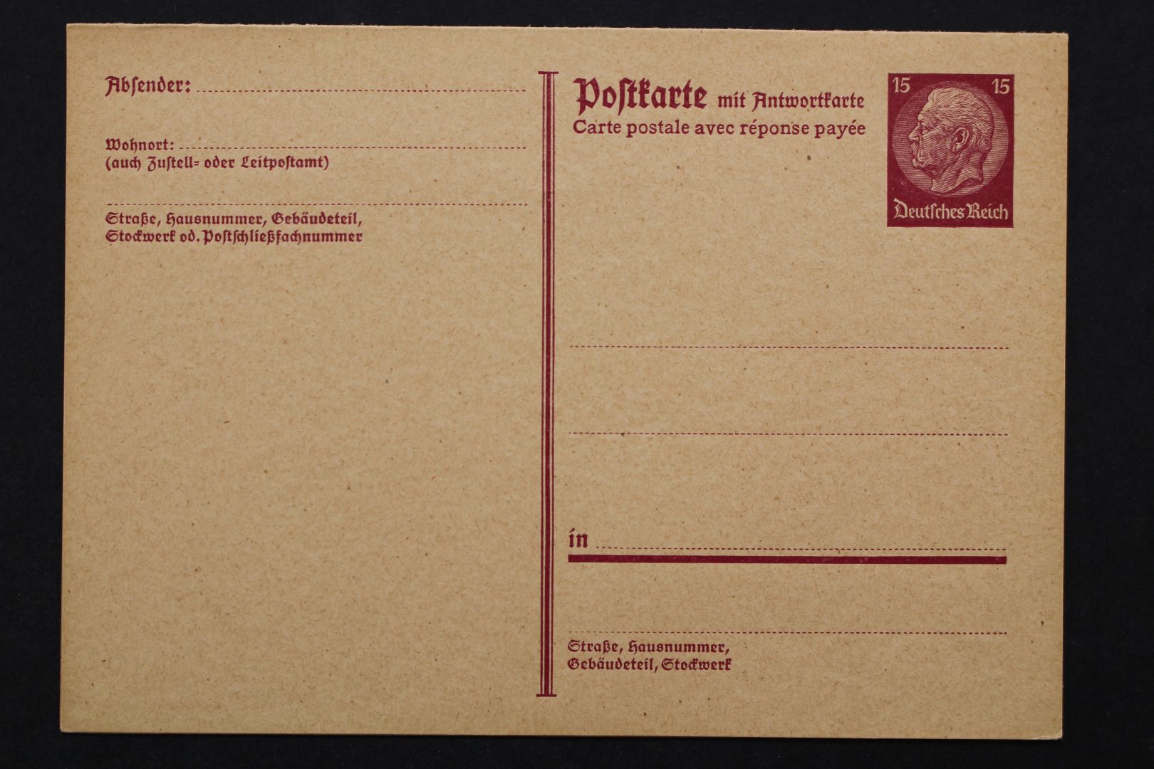 15/15 Pf Hindenburg mit Antwortkarte