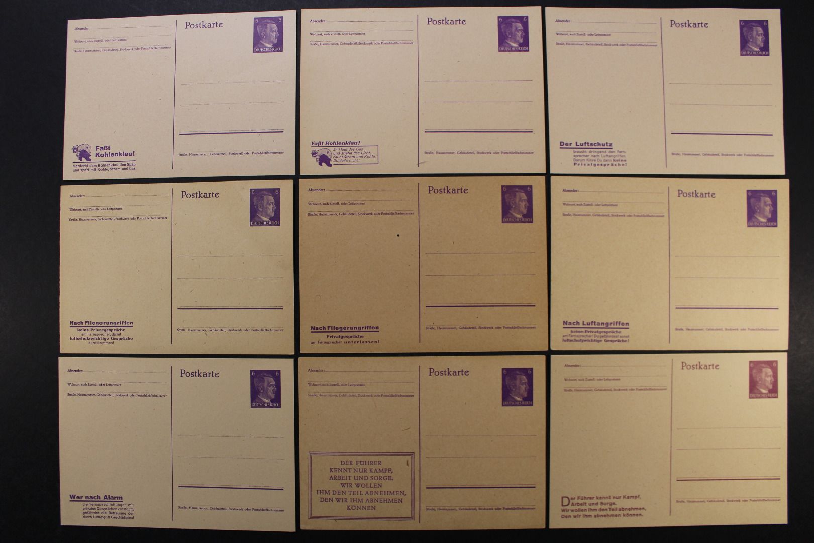 6 Pf Hitler, 9 Karten mit allen Propagandamotiven