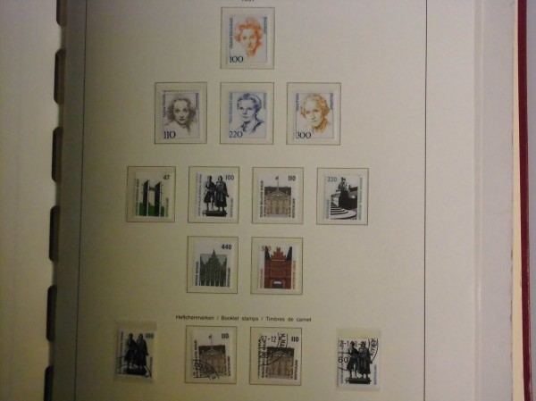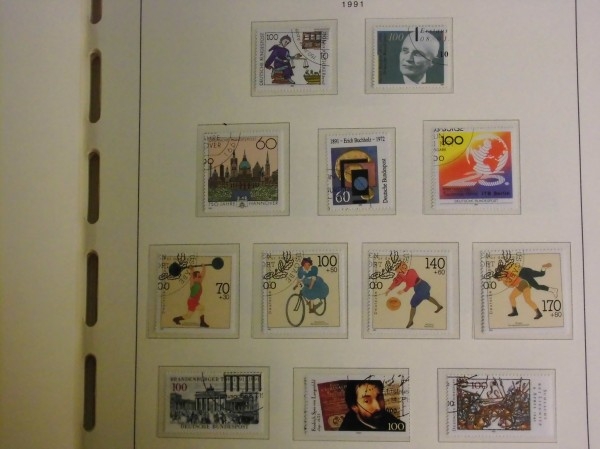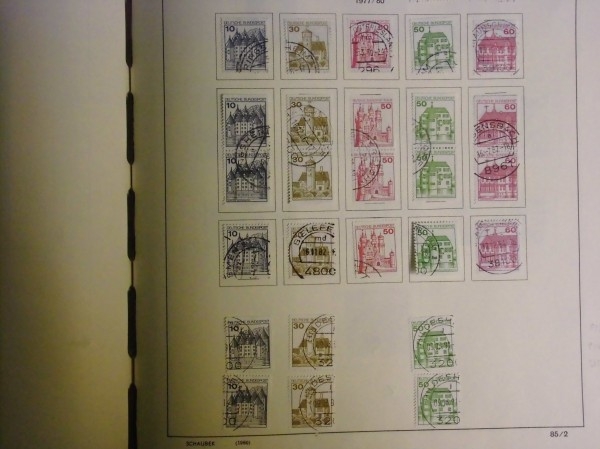 Umfangreiche gestempelte Sammlung, ab 1991-1997 sind zusätzlich viele postfrische Marken und Sätze enthalten. Die Marken sind oft in Bedarfsqualität gesammelt worden, ab Anfang der 1990er Jahre meist Versandstellenqualität. Untergebracht in 2 Schaubek Vordruckalben, bis 1990 ohne Klemmtaschen und danach die postfrischen Marken in Klemmtaschen und die gestempelten auf Blankoblättern mit Falz. Sehr preiswertes Angebot.