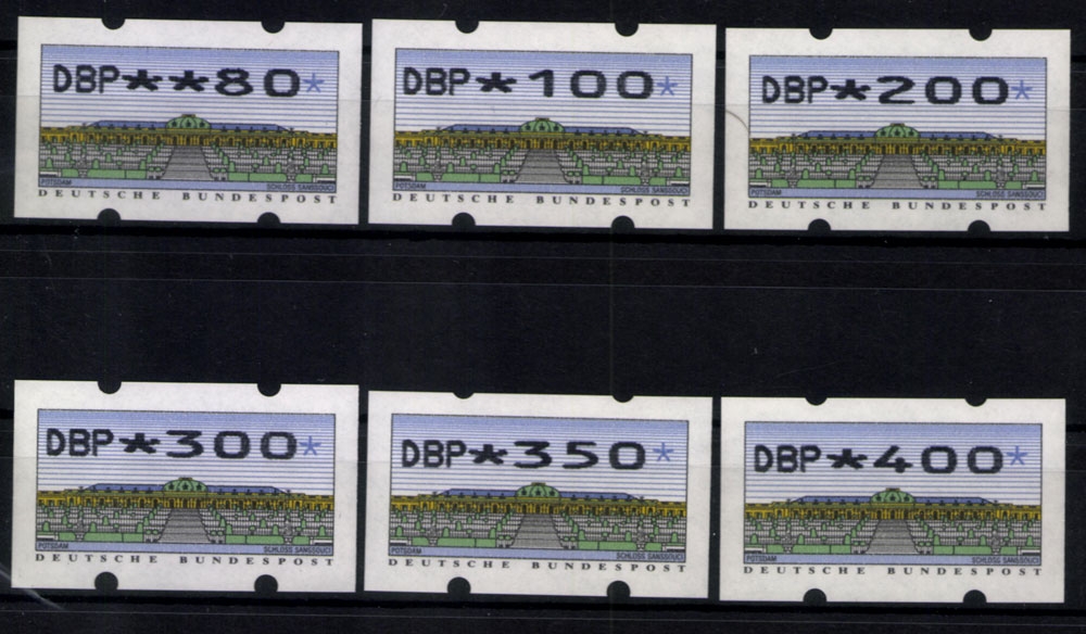 Schloss Sanssouci, DBP breit, Wertziffer fett, 6 Werte ohne Zählnummern.