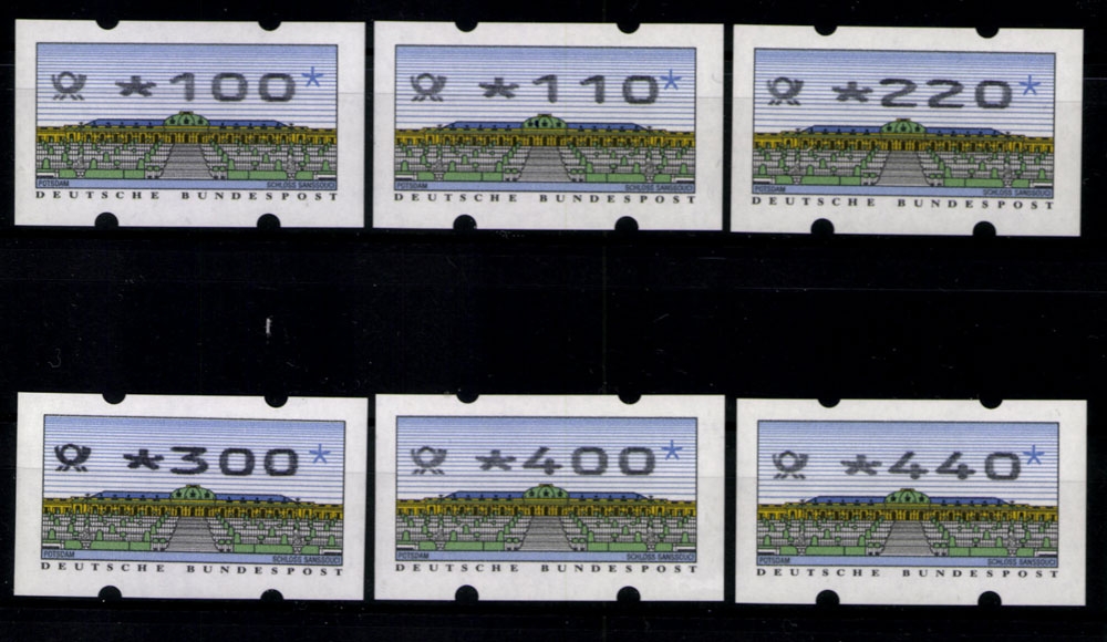 Schloss Sanssouci, Type mit Posthorn, 6 Werte ohne Zählnummern.
