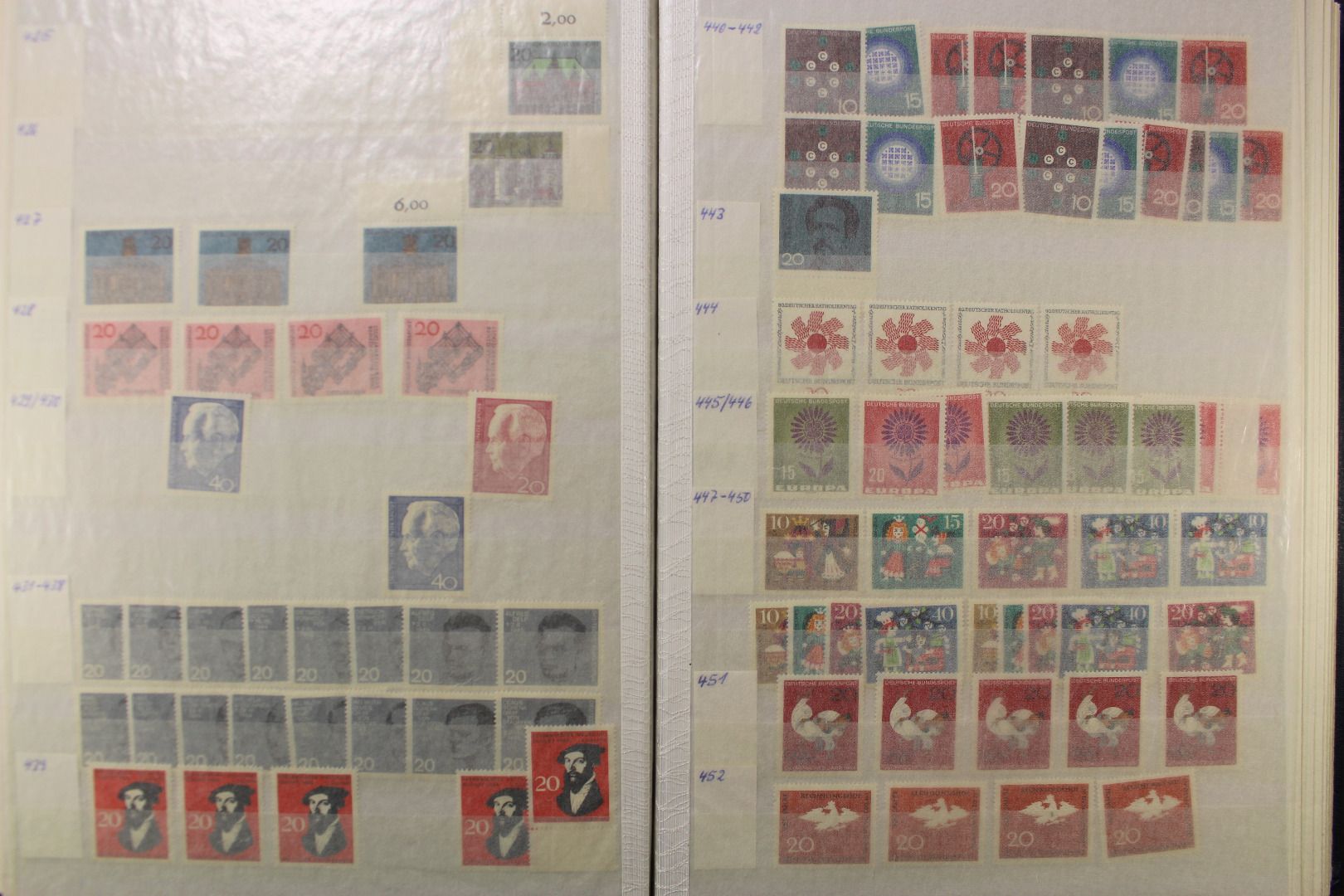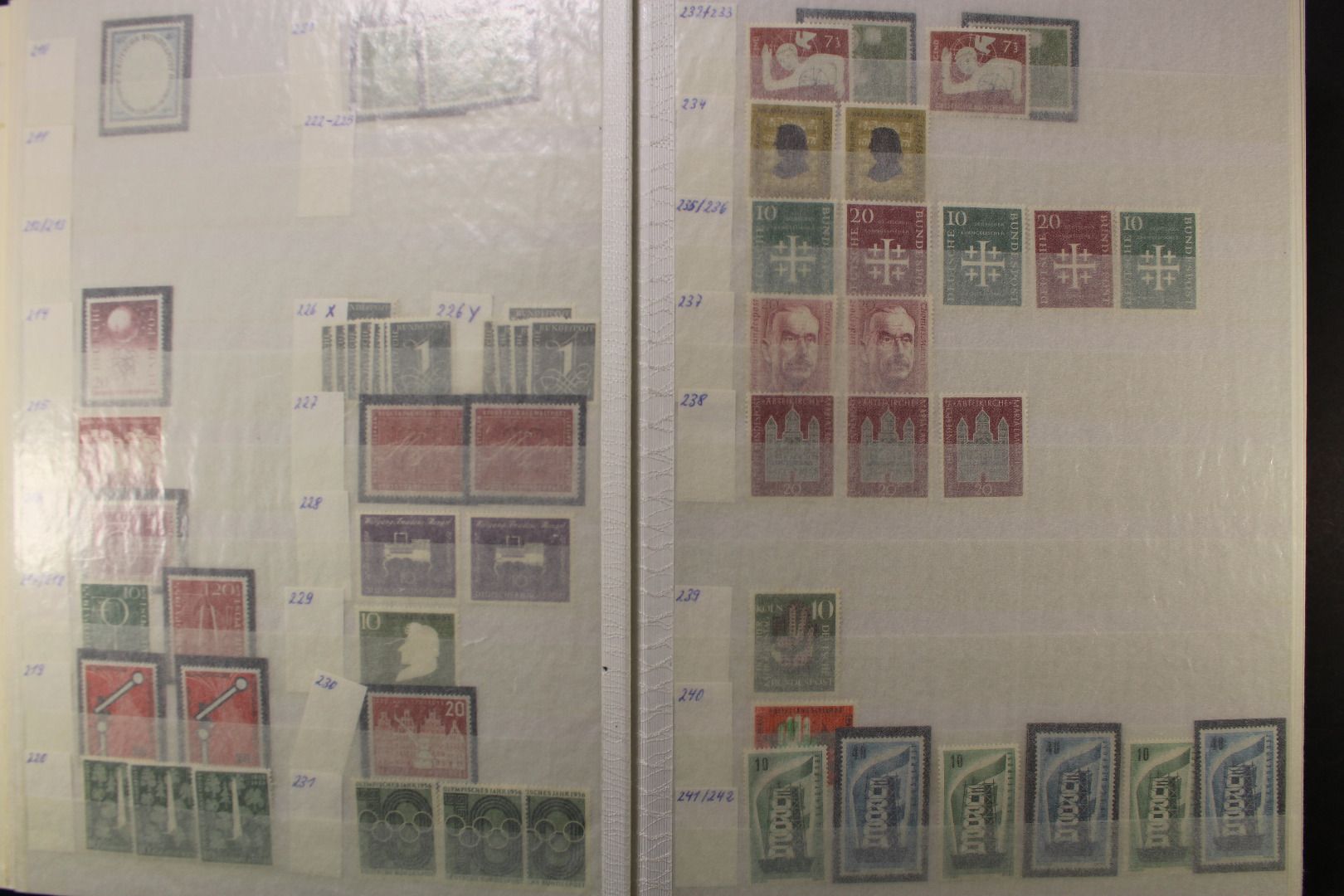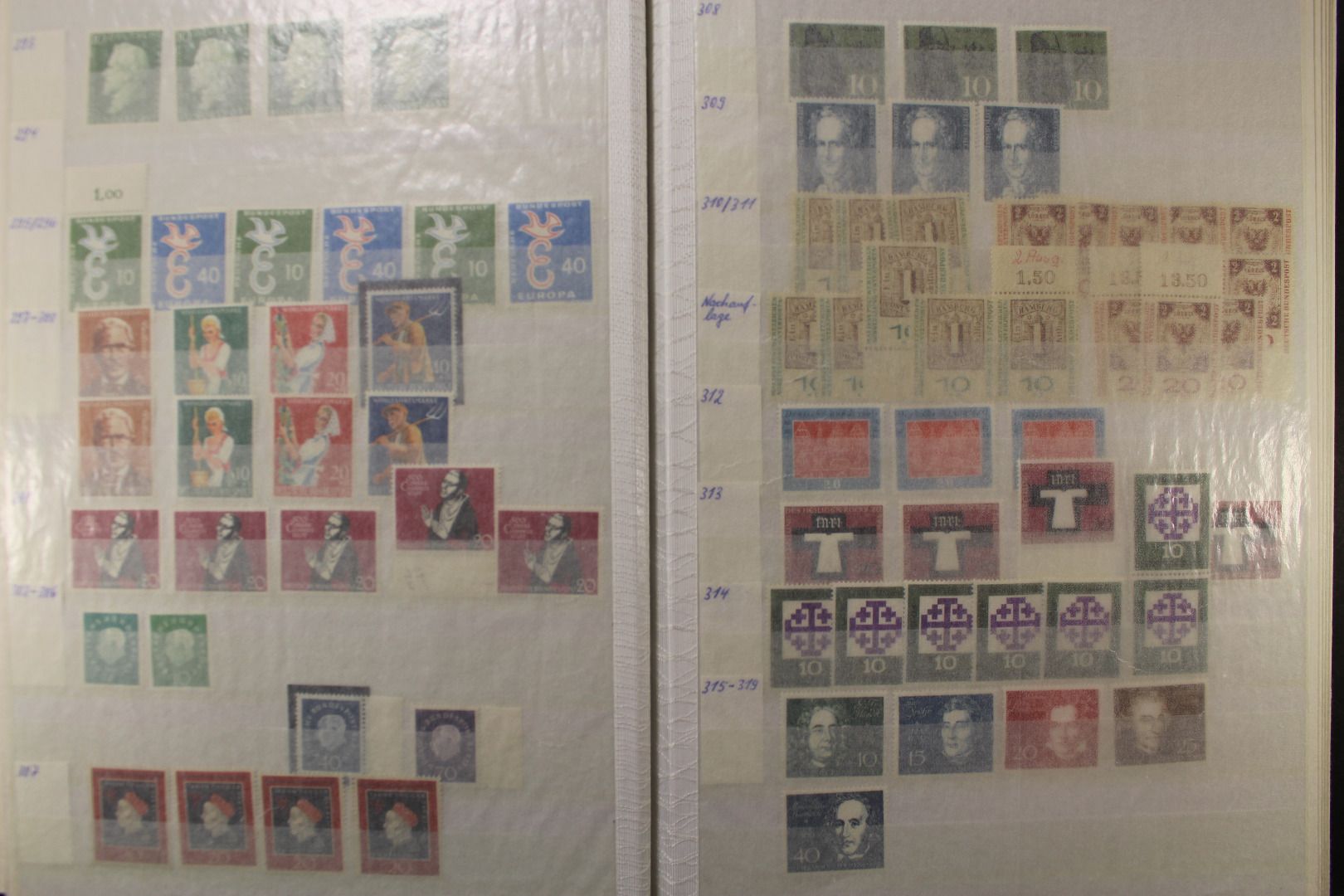 Meist postfrische Partie. Die 1950er Jahre sind oft ungebraucht mit einigen besseren Ausgaben. Die Qualität ist, wie bei Dubletten üblich, unterschiedlich. Untergebracht in 2 Einsteckalben.