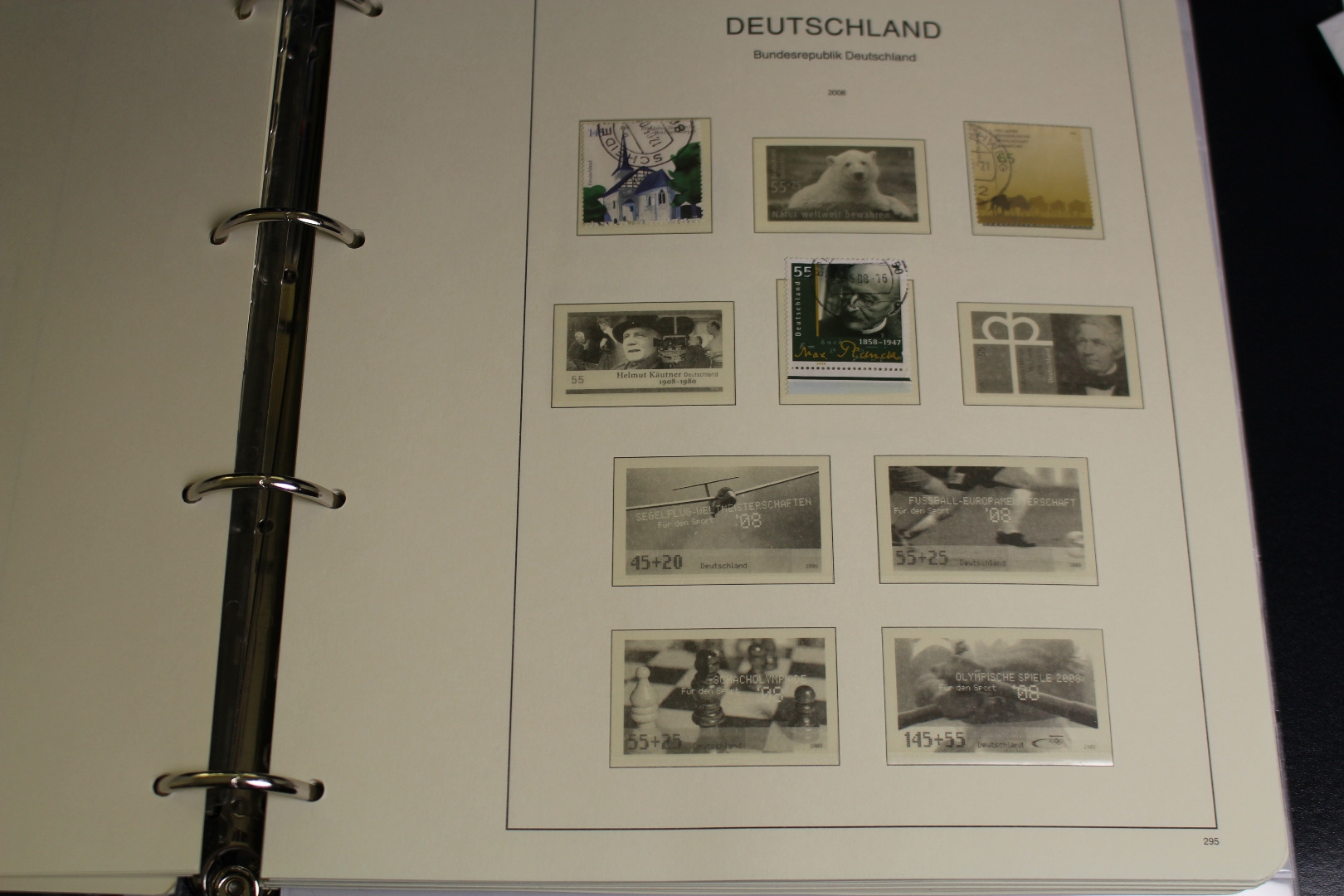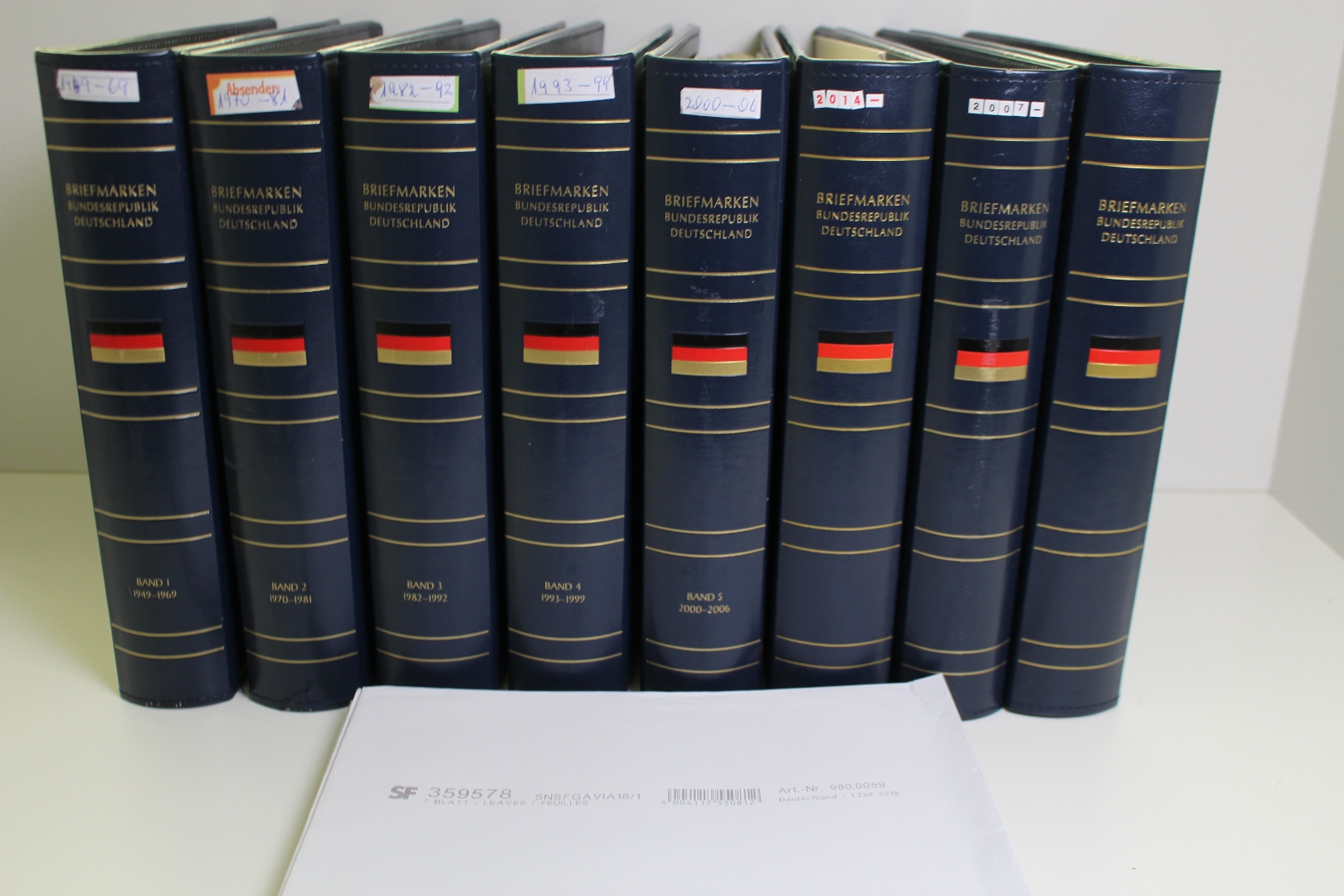 Kleine Teilsammlung, die Anfangsjahre sind schwächer besetzt, ab 1960 zwar mehr Inhalt aber fast ausschließlich von Briefen abgelöstes Material in stark unterschiedlicher Qualität. Viele Jahrgänge sind komplett fehlend. Untergebracht von 1949-2006 auf Schantl-Vordruckblättern mit Folienblättern und ab 2007 auf Blättern mit Klemmtaschen. Der Jahrgang 2012 scheint komplett zu fehlen. Dabei liegen noch diverse Vordruckblätter mit Besonderheiten wie z.B. Folienblättern oder scheinbar doppelte Blätter/Jahrgänge. Nicht kontrolliert auf Komplettheit der Vordrucke. Das Extra liegt ein Ringbinder mit Dublettenbeständen etc. dabei. Wir bieten diesen Bestand total günstig an!
