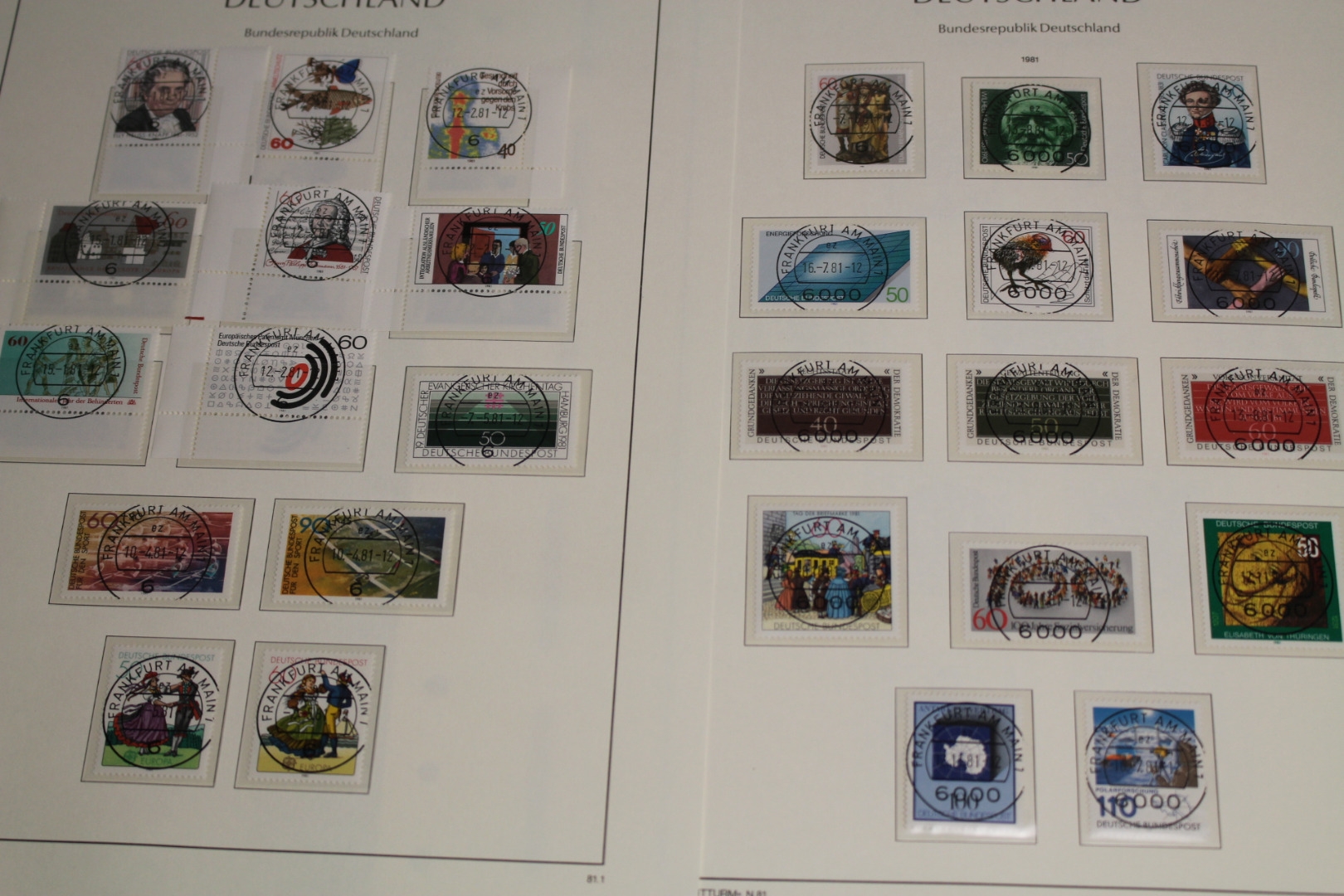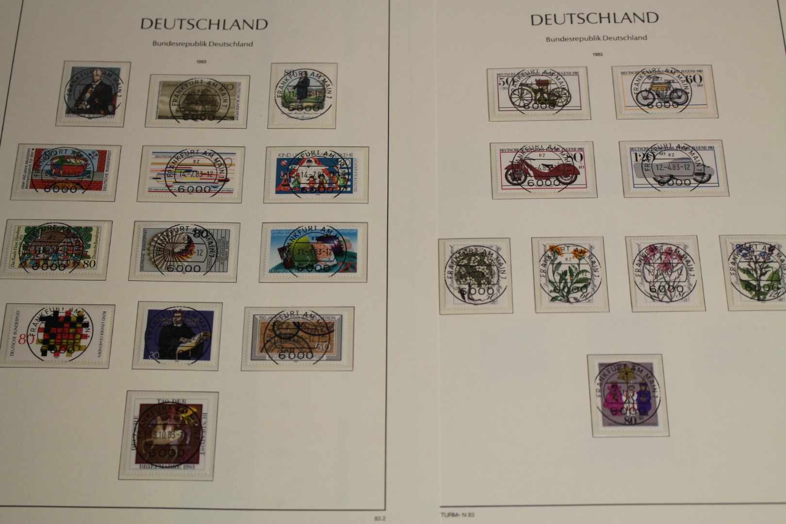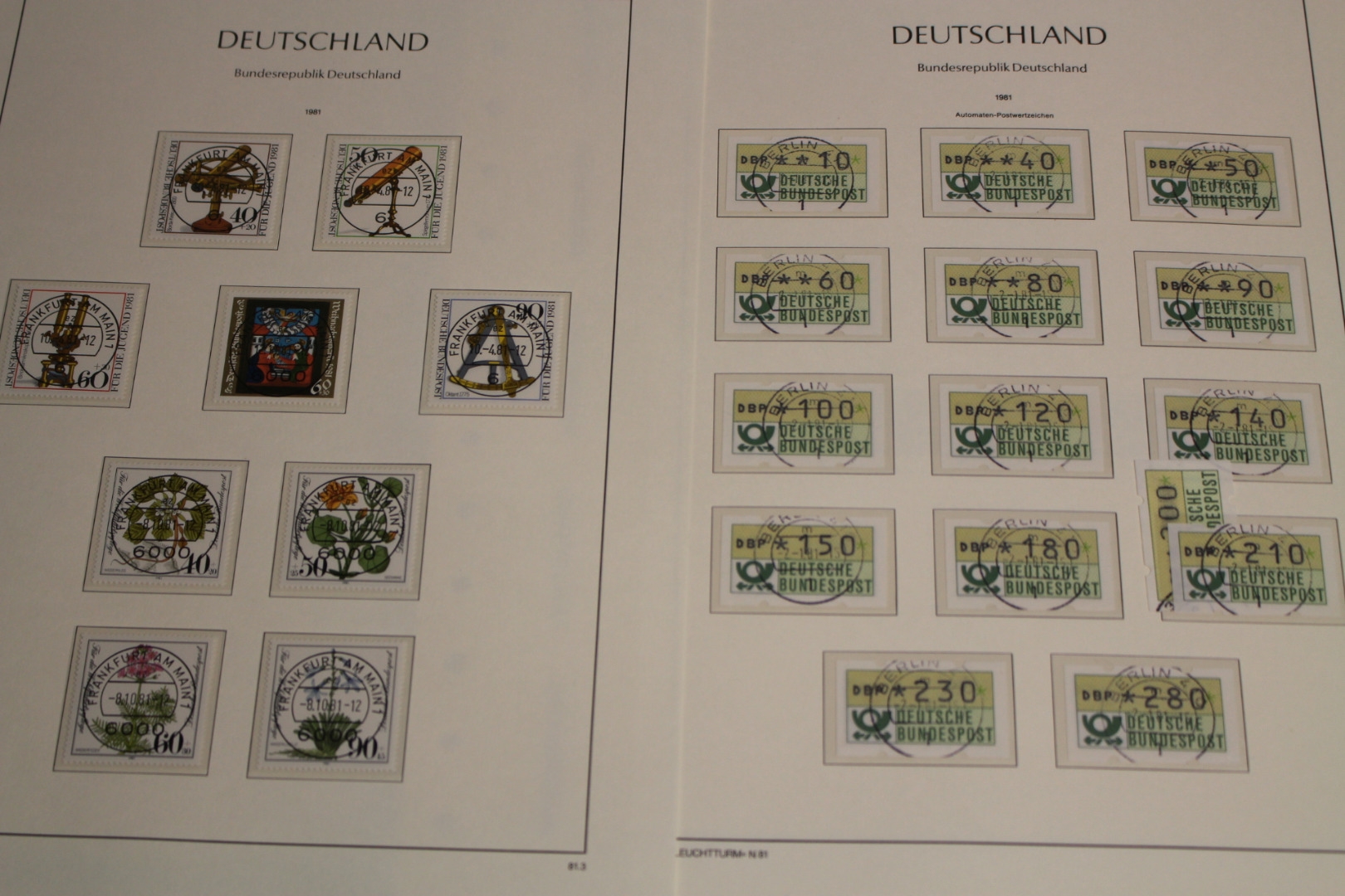 In den Hauptnummern fast komplette Sammlung. Viele Marken haben zentrische Tagesstempel der Versandstelle oder normale Tagesstempel. Versandstellengestempelte Briefmarken sind meist mit Gummierung. Die Qualität ist etwas unterschiedlich. Untergebracht auf guten Leuchtturm SF Vordruckblättern mit Klemmtaschen, ohne Binder.