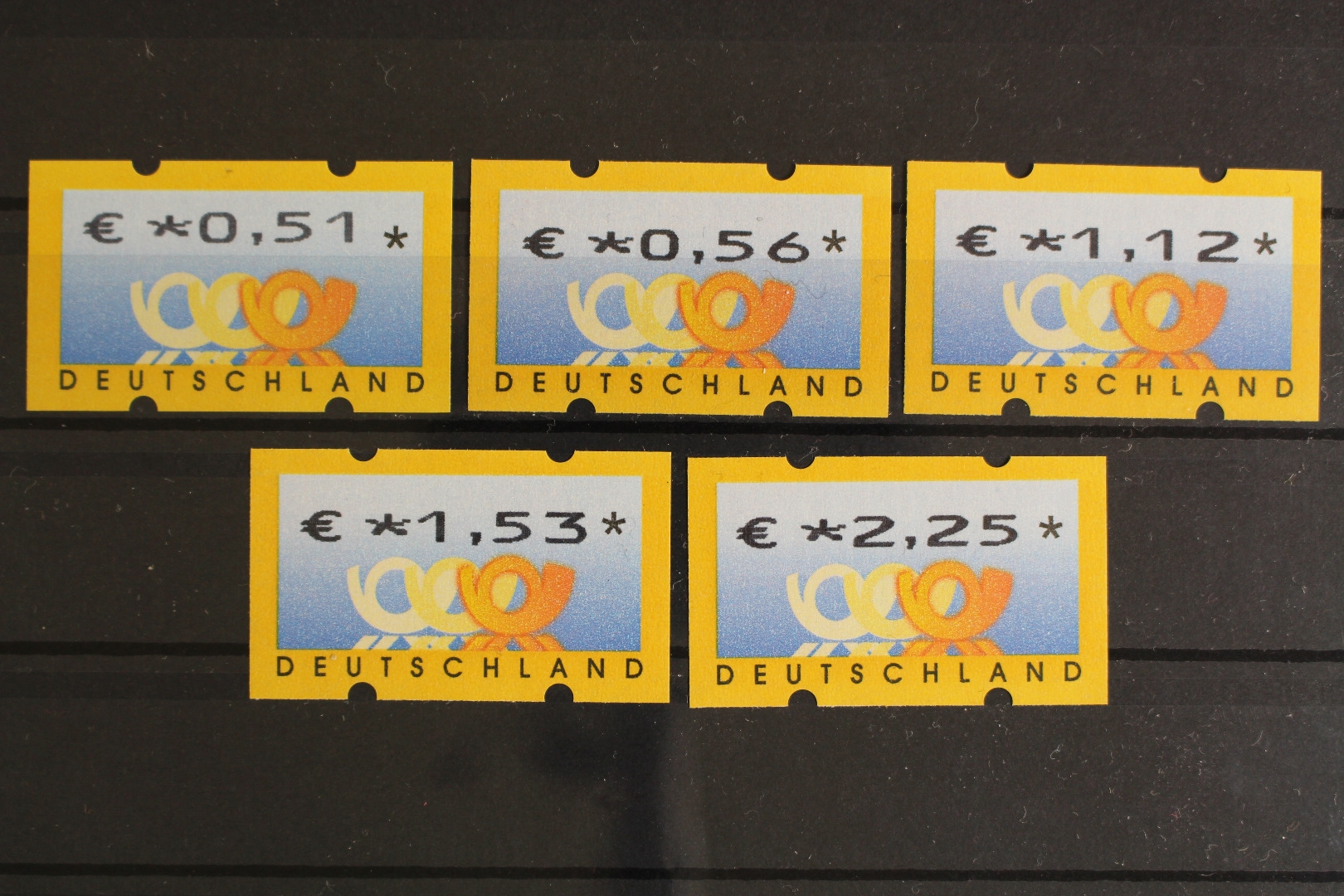 0,51, 0,56, 1,12, 1,53 und 2,25 € Emblem, ohne Zählnummer.