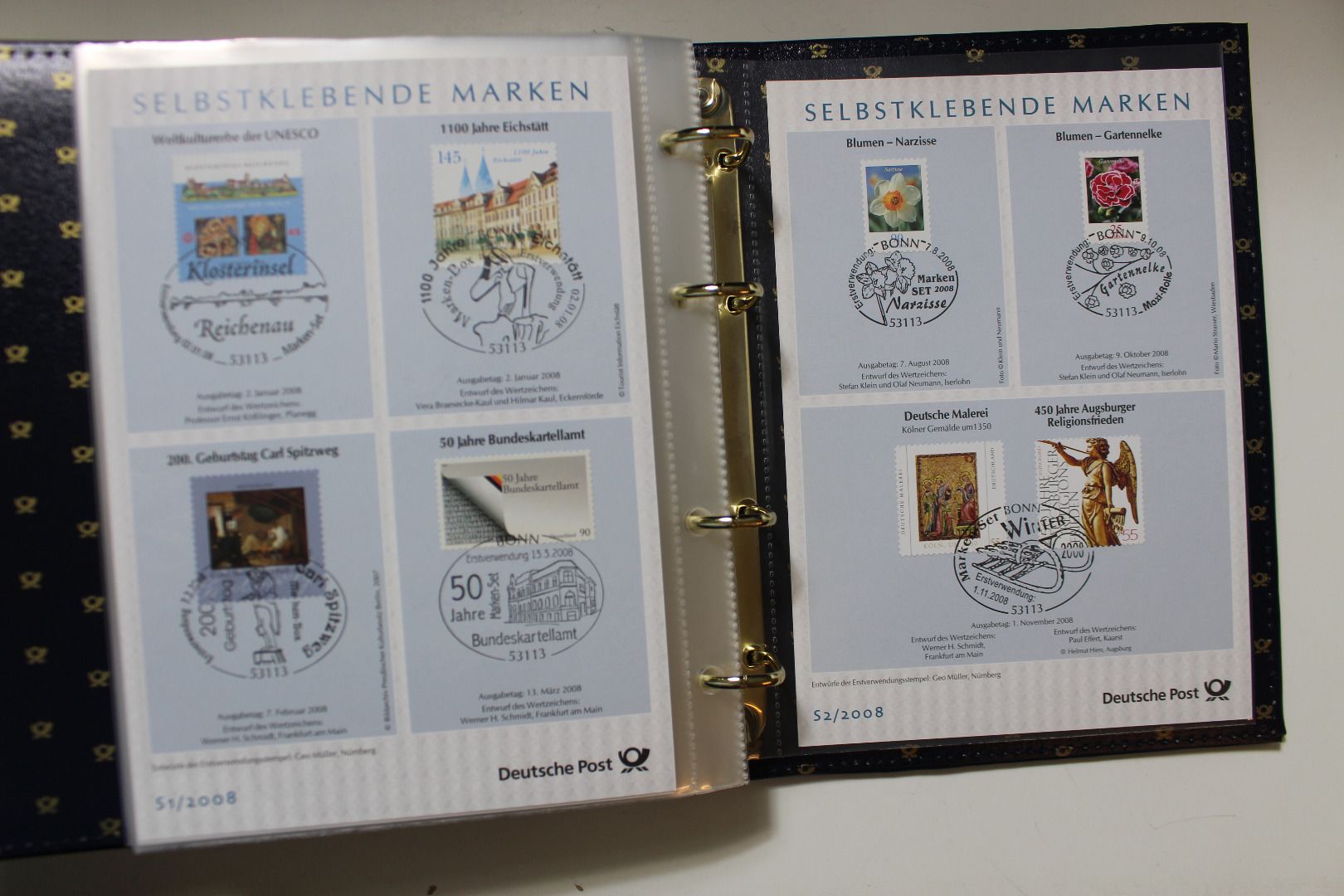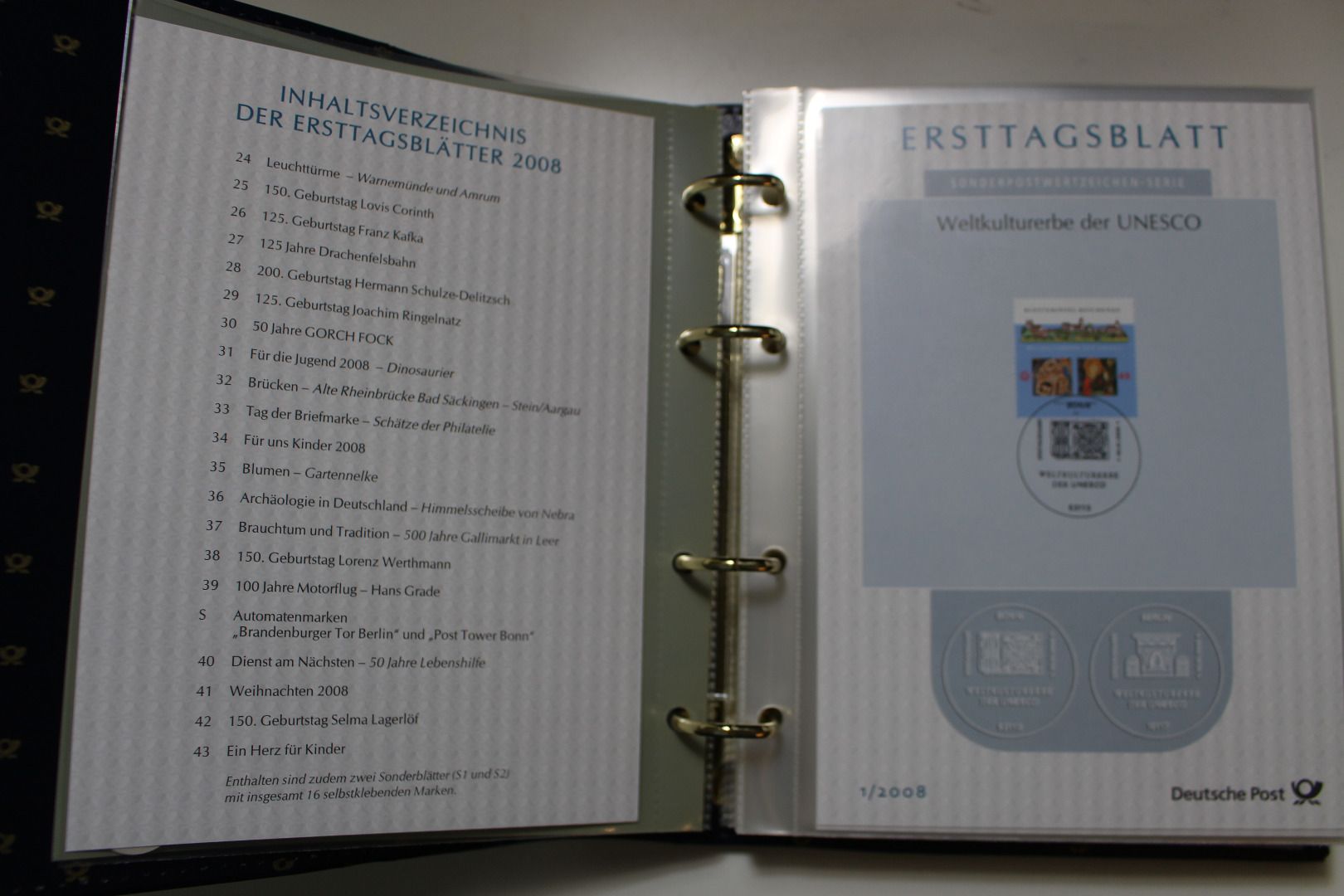 Die Sammlung ist in 19 Post-Alben mit Kassetten untergebracht. Die Komplettheit haben wir nicht überprüft. Da die ETB´s abonniert wurden - müssten eigentlich alle Blätter vorhanden sein die von der Post ausgegeben wurden.