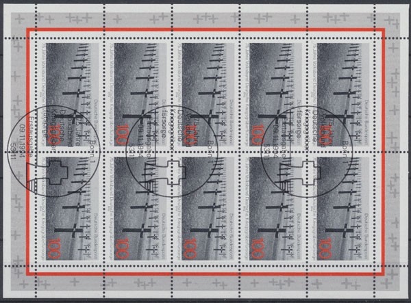 75 Jahre Volksbund deutscher Kriegsgräberfürsorge, Zehnerbogen, Ersttagssonderstempel Bonn
