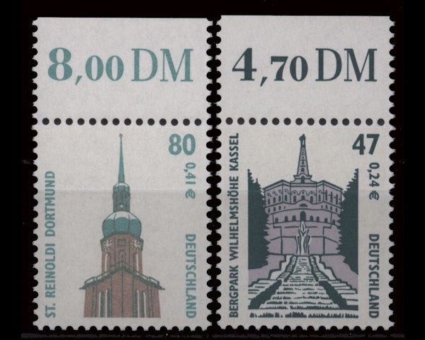 47 Pf. / 0,24 EUR + 80 Pf. / 0,41 EUR Sehenswürdigkeiten, Oberrandsatz