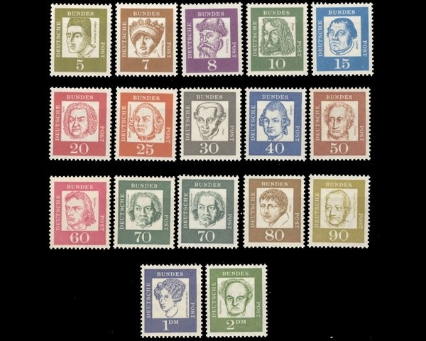 Bedeutende Deutsche, 17 Werte, fluor. Papier