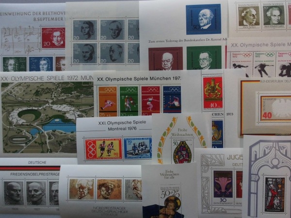Block-Kollektion aller 16 Blockausgaben von 1959-1978, incl. Beethoven-Block, geliefert wird die günstigste Stempelvariante. Katalogwert über 100,00 EUR.