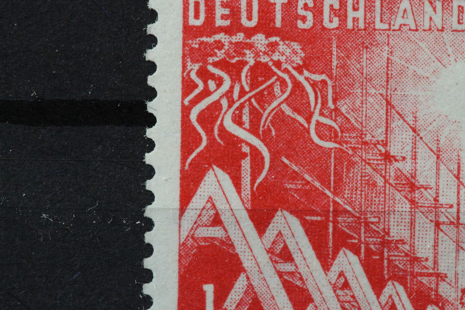 20 Pf Bundestag mit Plattenfehler: roter Fleck im Masten unter den Schmuckbändern