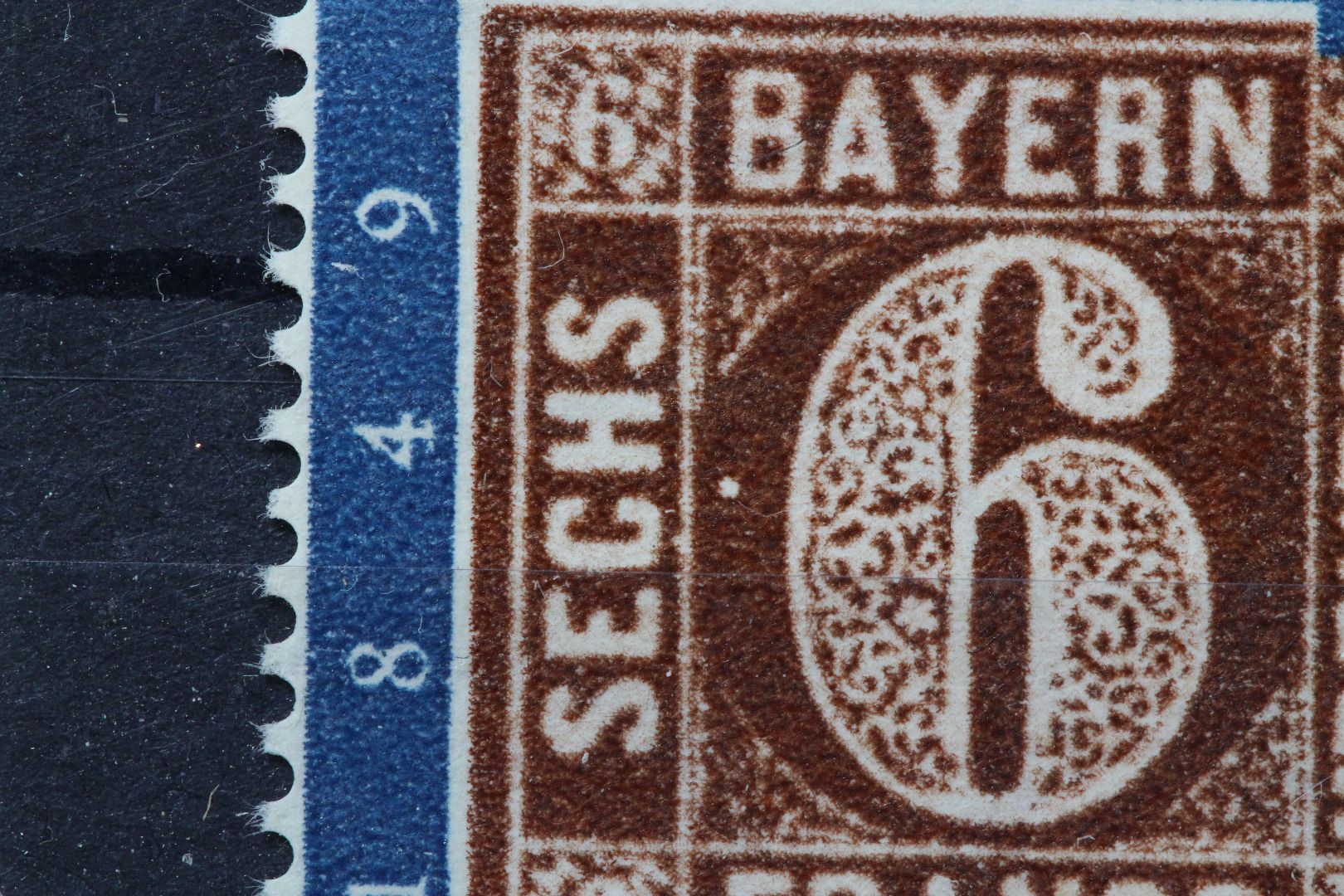 30 Pf. 100 Jahre deutsche Briefmarken, Plattenfehler: heller Fleck links der großen "6"