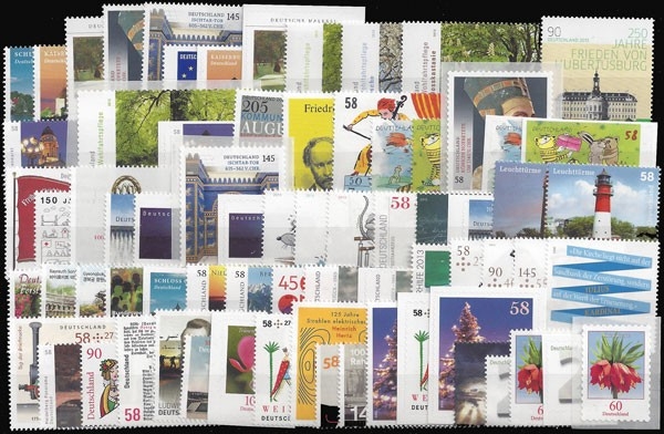 In einem kompletten Jahrgang ist jede Kataloghauptnummer einmal in der günstigsten Variante enthalten. Besonderheiten wie Blockeinzelmarken, Zähnungs-, Gummi- und Papiervarianten sind nicht enthalten.
