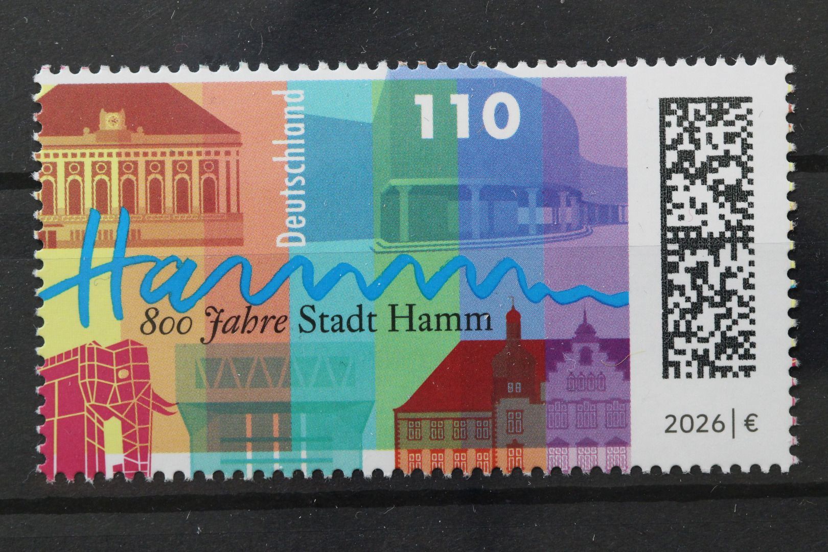 800 Jahre Stadt Hamm. Schriftzug, Bahnhof, Gustav-Lübcke-Museum, Glaselefant im Maximilianpark, Städtische Musikschule Hamm, Rathaus