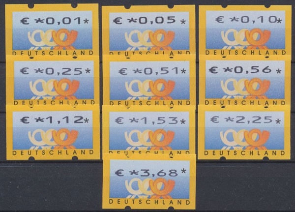 0,01 - 3,68 € Postemblem, Versandstellensatz mit 10 Werten. Einige Marken mit Zählnummern können enthalten sein.