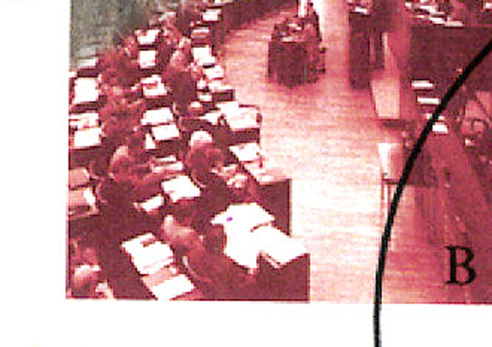 50 Jahre BRD, Plattenfehler: dicker roter Punkt auf dem 2. Pult.