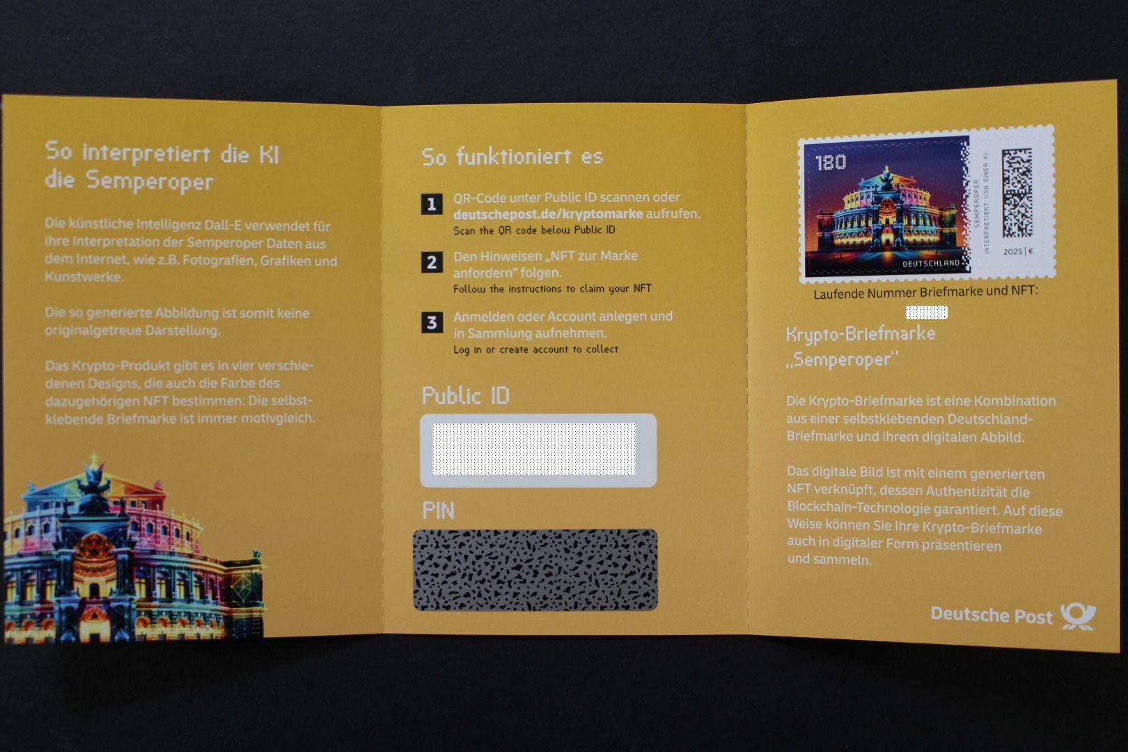 Historische Bauwerke in Deutschland: Semper Oper, Dresden. Einzelmarke in Markenheftchen mit Krypto-Option