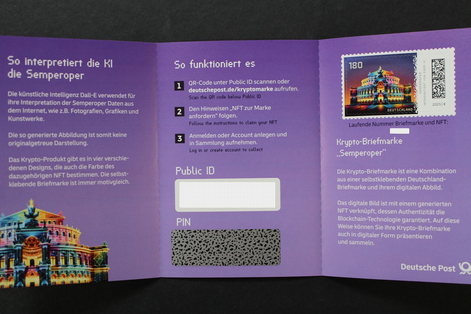 Historische Bauwerke in Deutschland: Semper Oper, Dresden. Einzelmarke in Markenheftchen mit Krypto-Option
