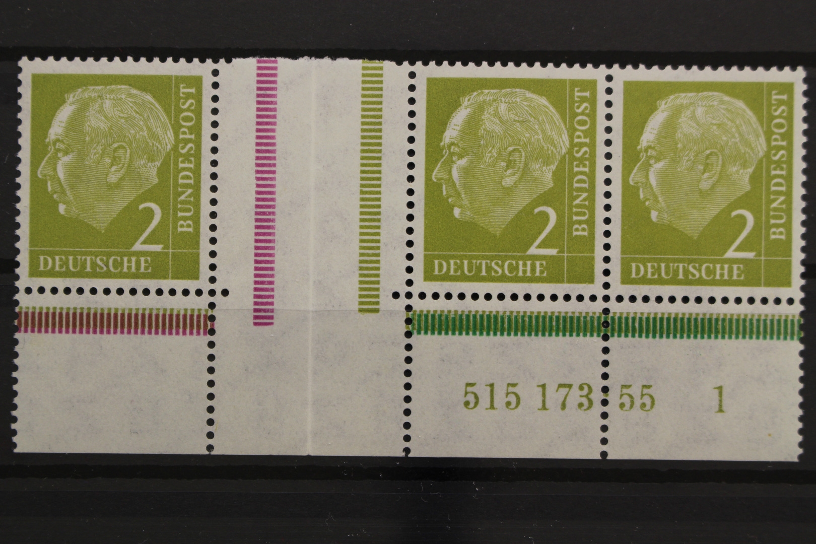 2 Pf. + Z + 2 Pf. + 2 Pf. Heuss, Unterrand mit HAN. Im Zwischensteg einmal senkrecht gefaltet.