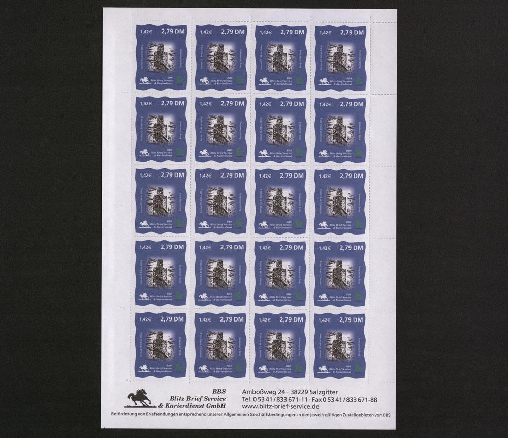 1,42 € / 2,79 DM Burg Lichtenstein, kompletter 20er Bogen.