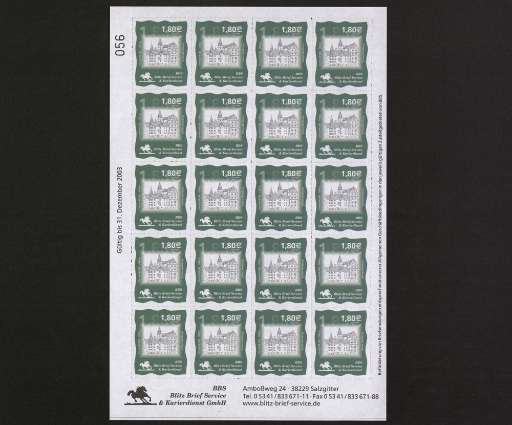 1,80 € Burg Lichtenstein, kompletter 20er Bogen.