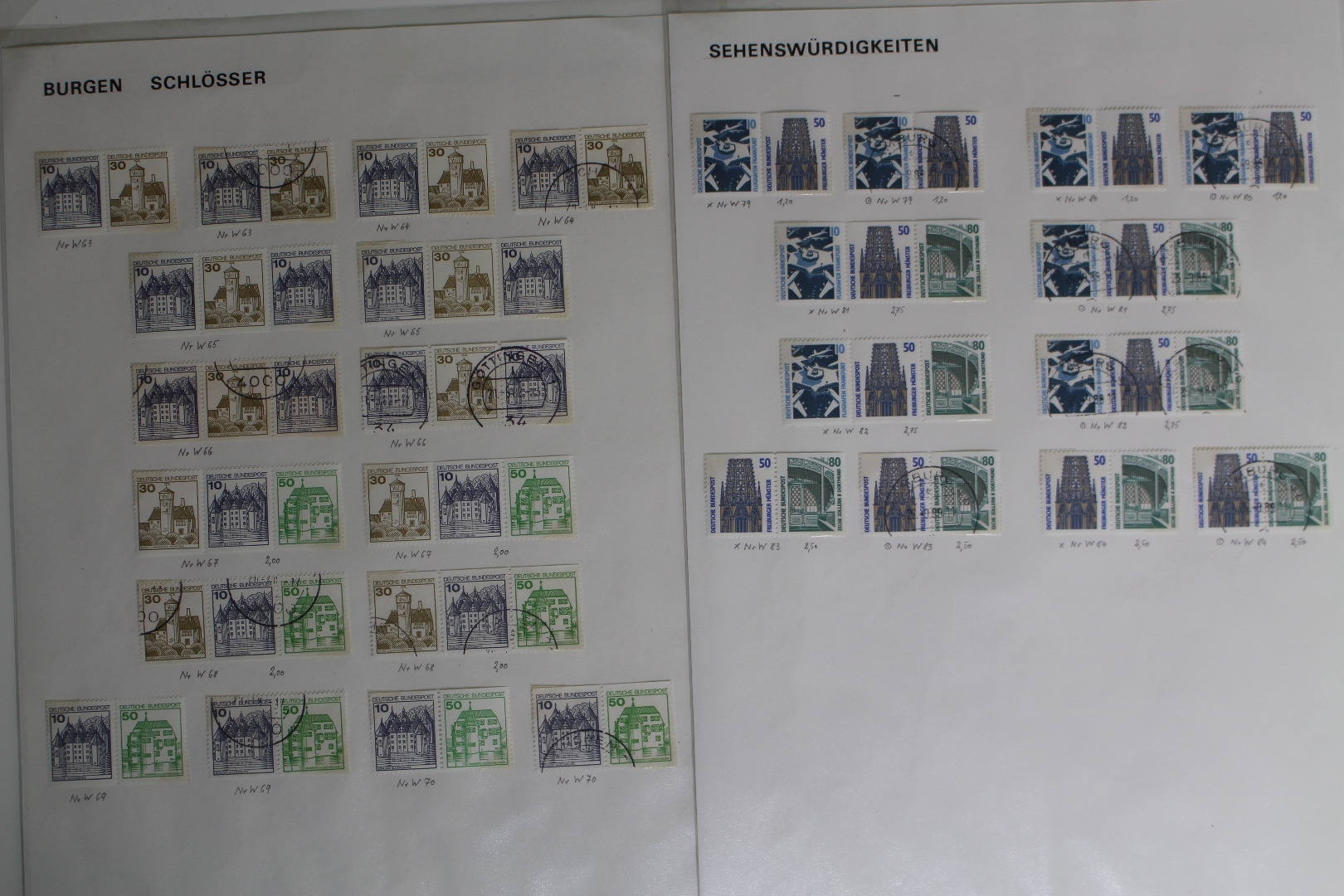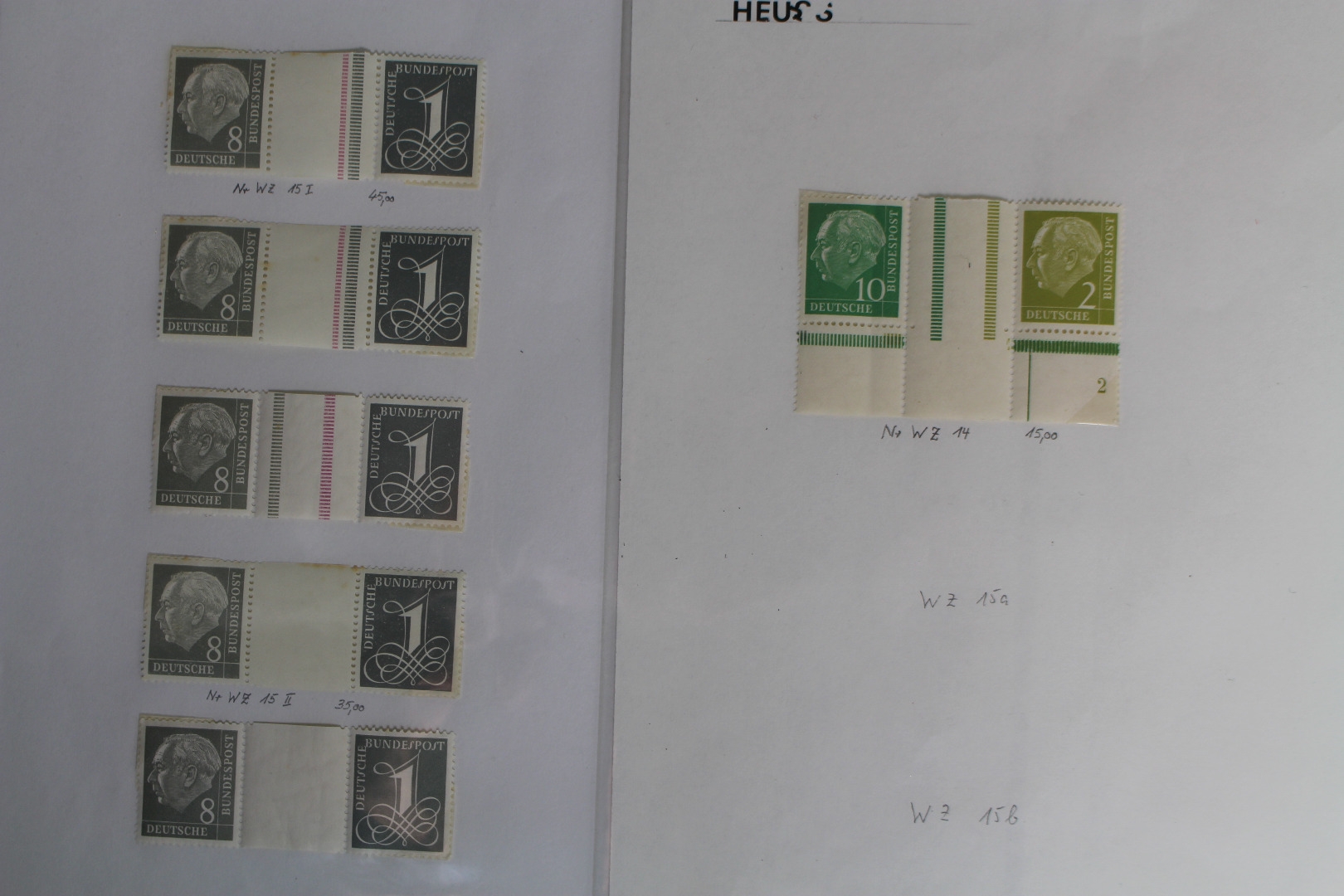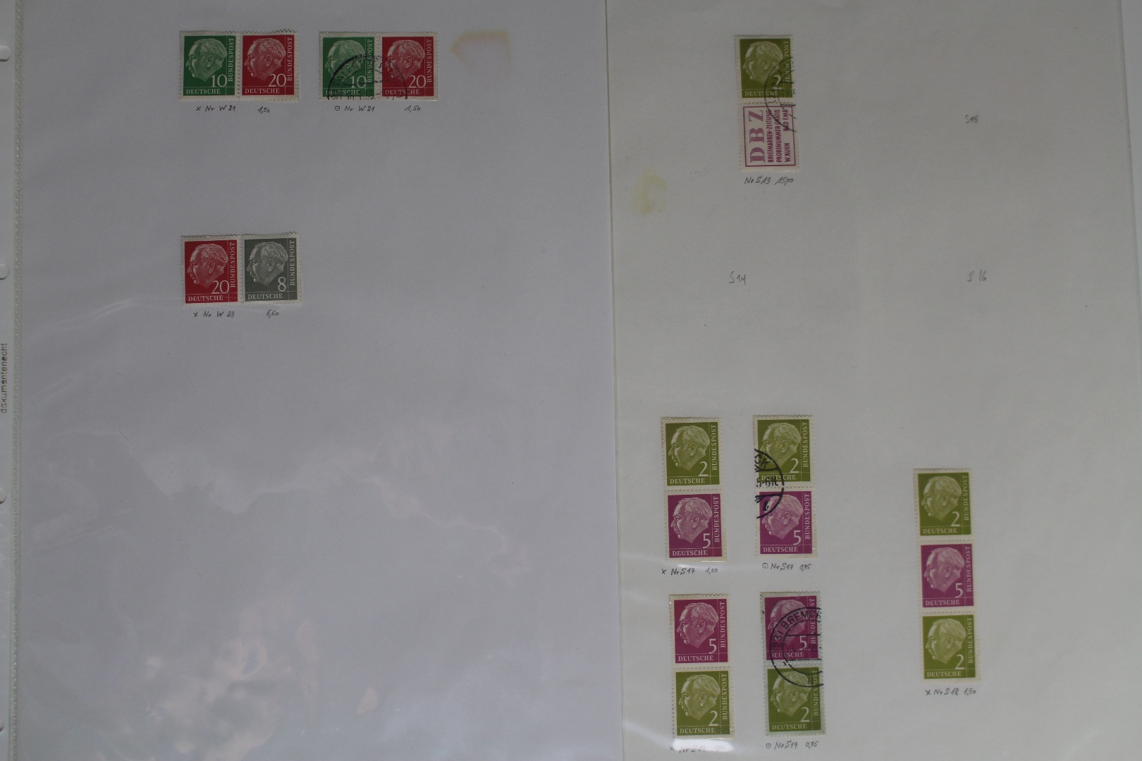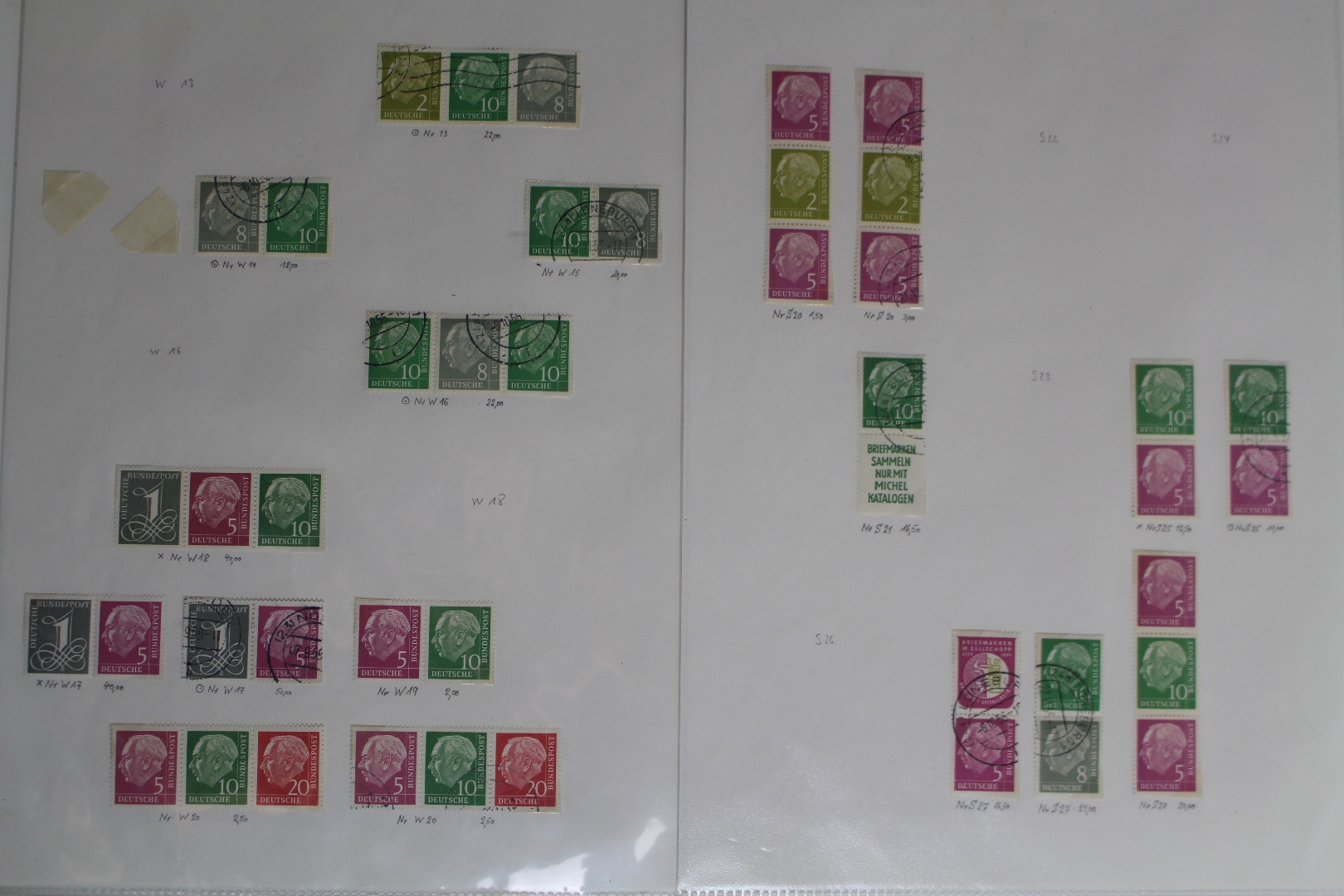 Meist postfrisch und gestempelt geführte Teilsammlung. Enthalten sind auch diverse interessantere Ausgaben der Heuss-Serie. Die WZ 15 Ausgaben haben bräunliche Flecke. Sonst allgemein in guter etwas unterschiedlicher Qualität. Dazu sind noch ab 1971 diverse senkrechte C/D Paare enthalten. Untergebracht auf Papier in Klarsichtfolien. Die Briefmarken wurden mit Fotoecken fixiert.