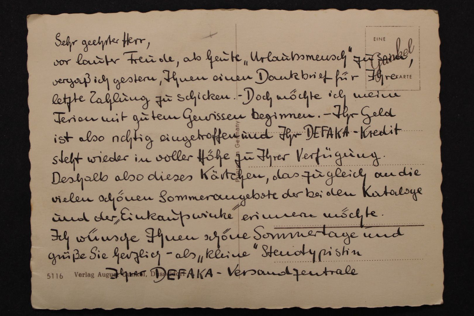 Karte nicht gelaufen, beschriftet, etwas bestoßen, leicht fleckig