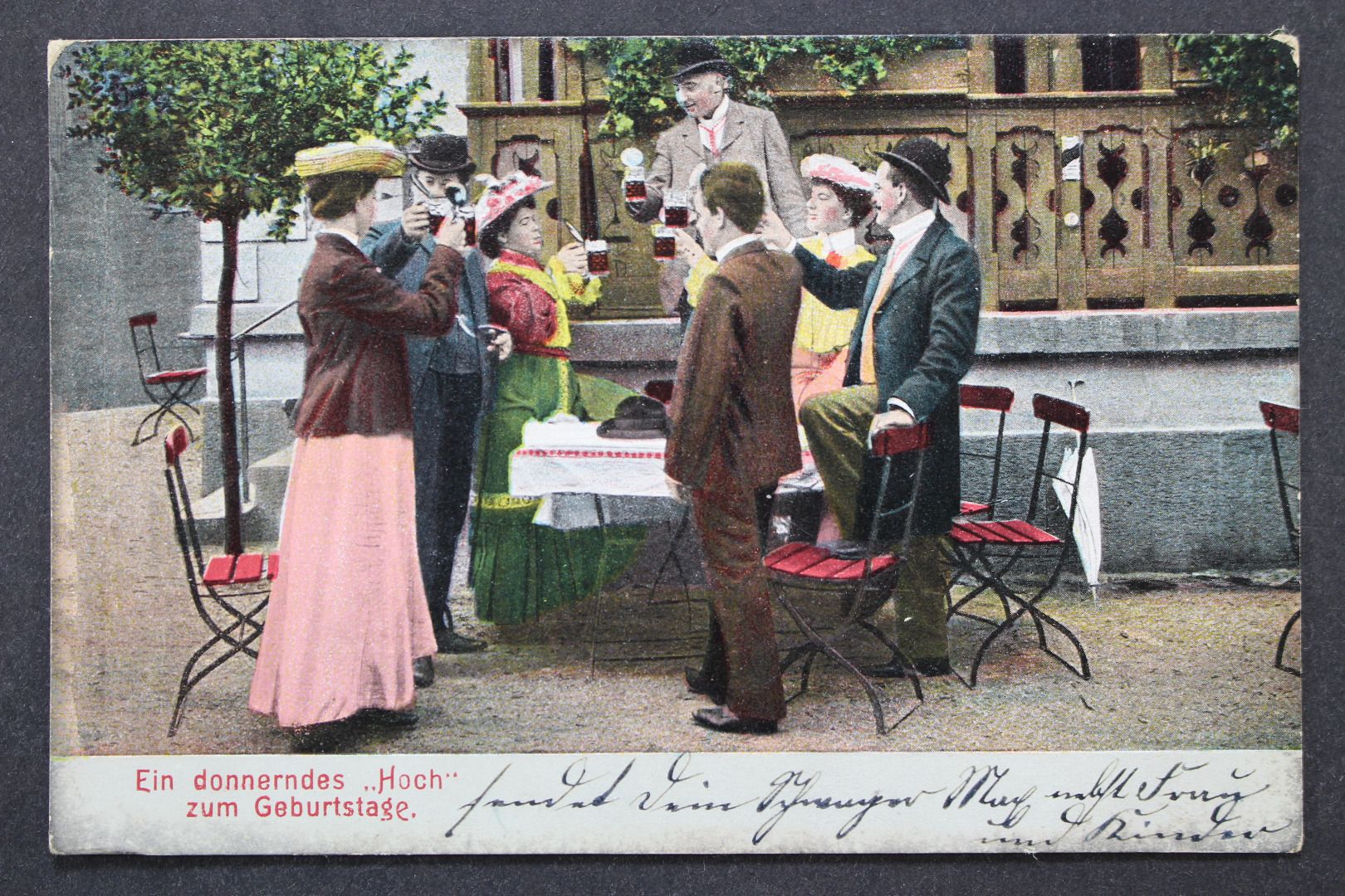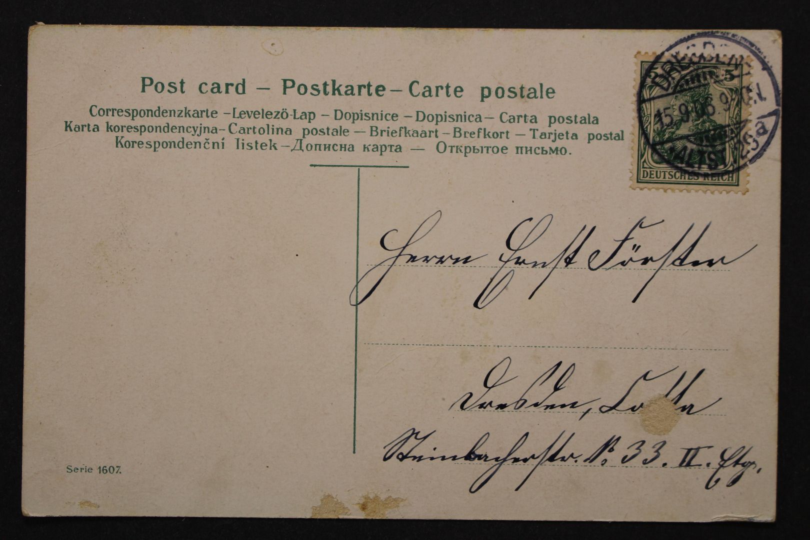 Karte gelaufen, etwas bestoßen, leicht fleckig
