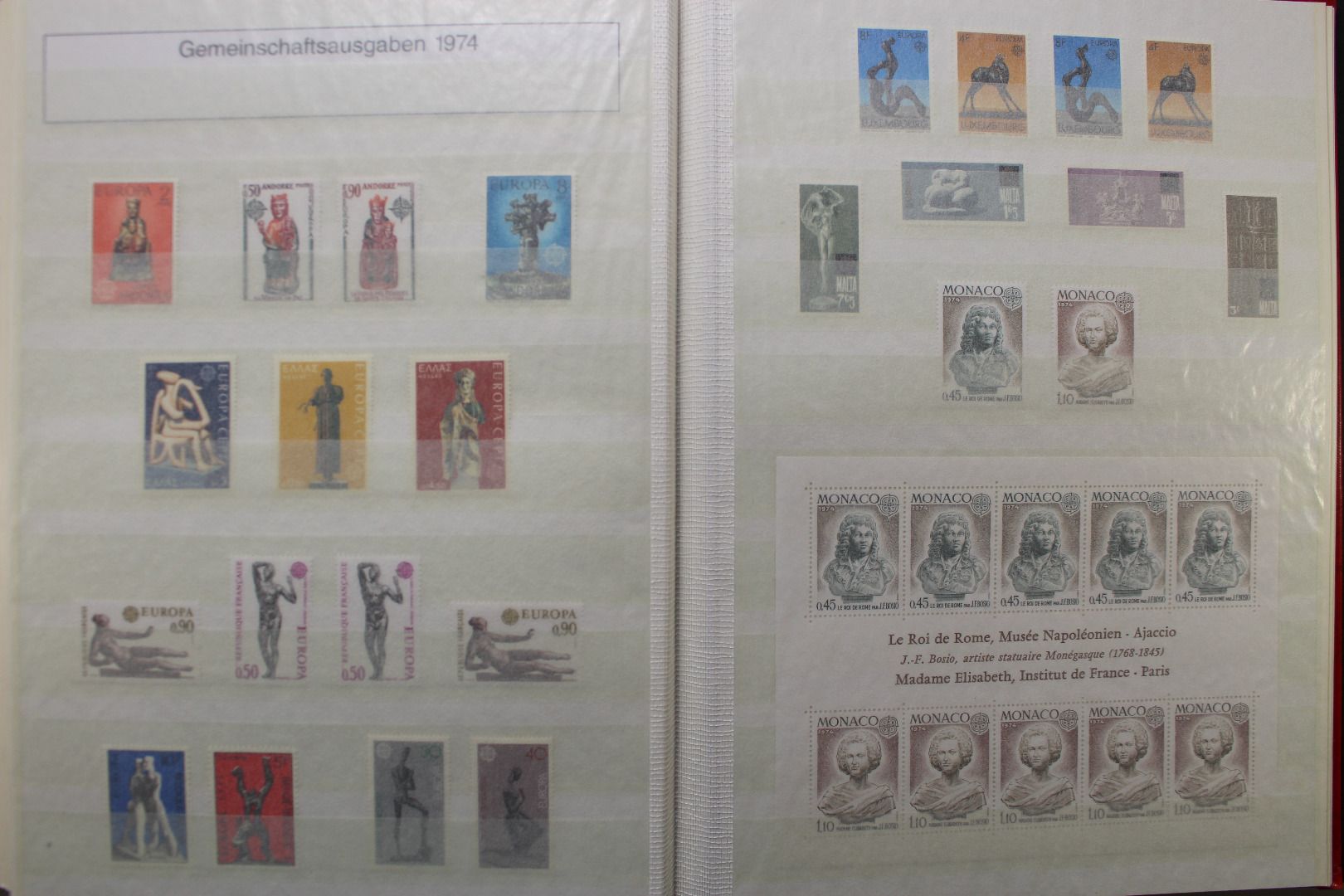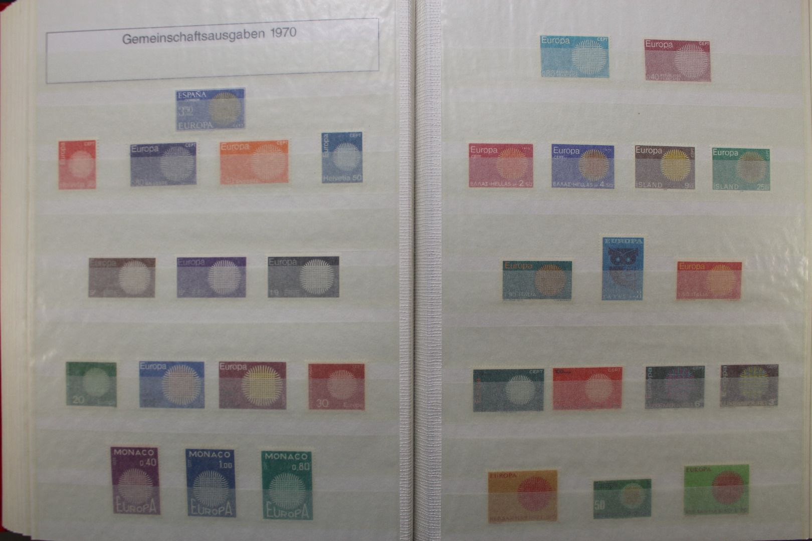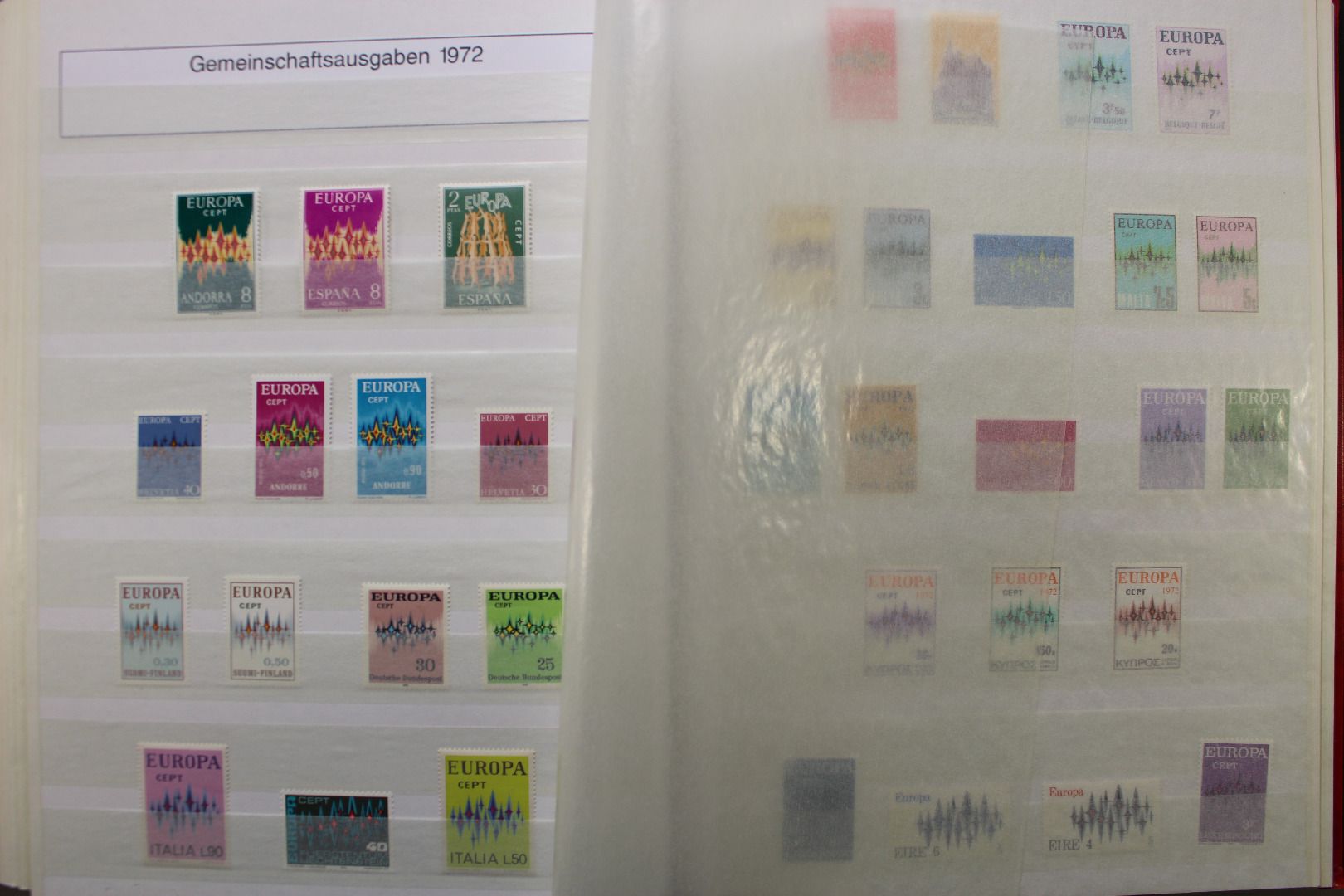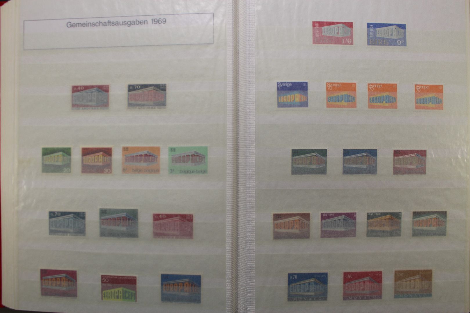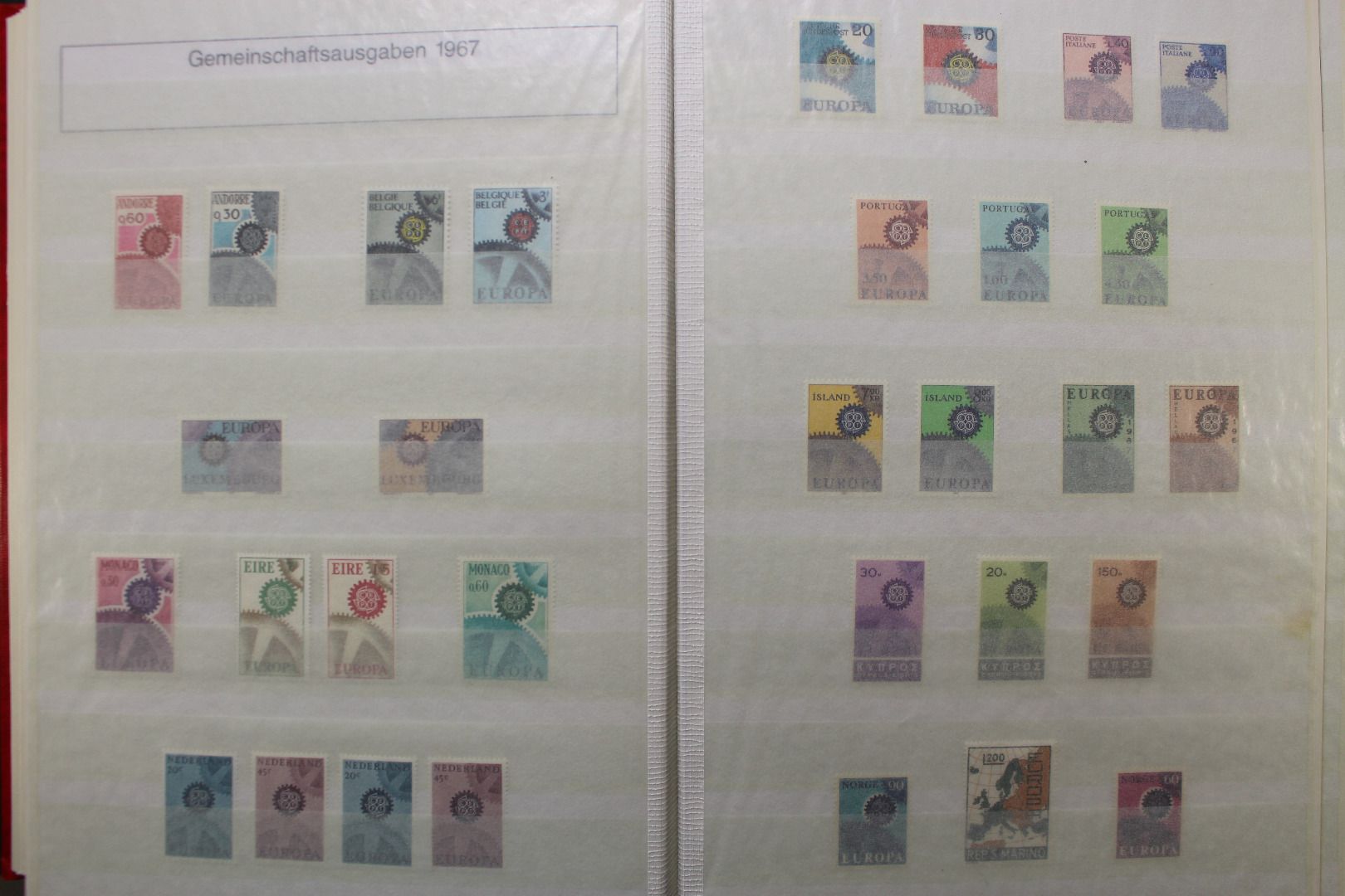 Augenscheinlich sehr umfangreiche oder sogar komplette Sammlung. Die besseren Ausgaben wie Luxemburg 1956, Liechtenstein 1960 und Spanisch Andorra 1972 sind in einwandfreier Qualität enthalten. Die Marken stammen alle aus einem Abonnement. Untergebracht in 4 Einsteckalben.