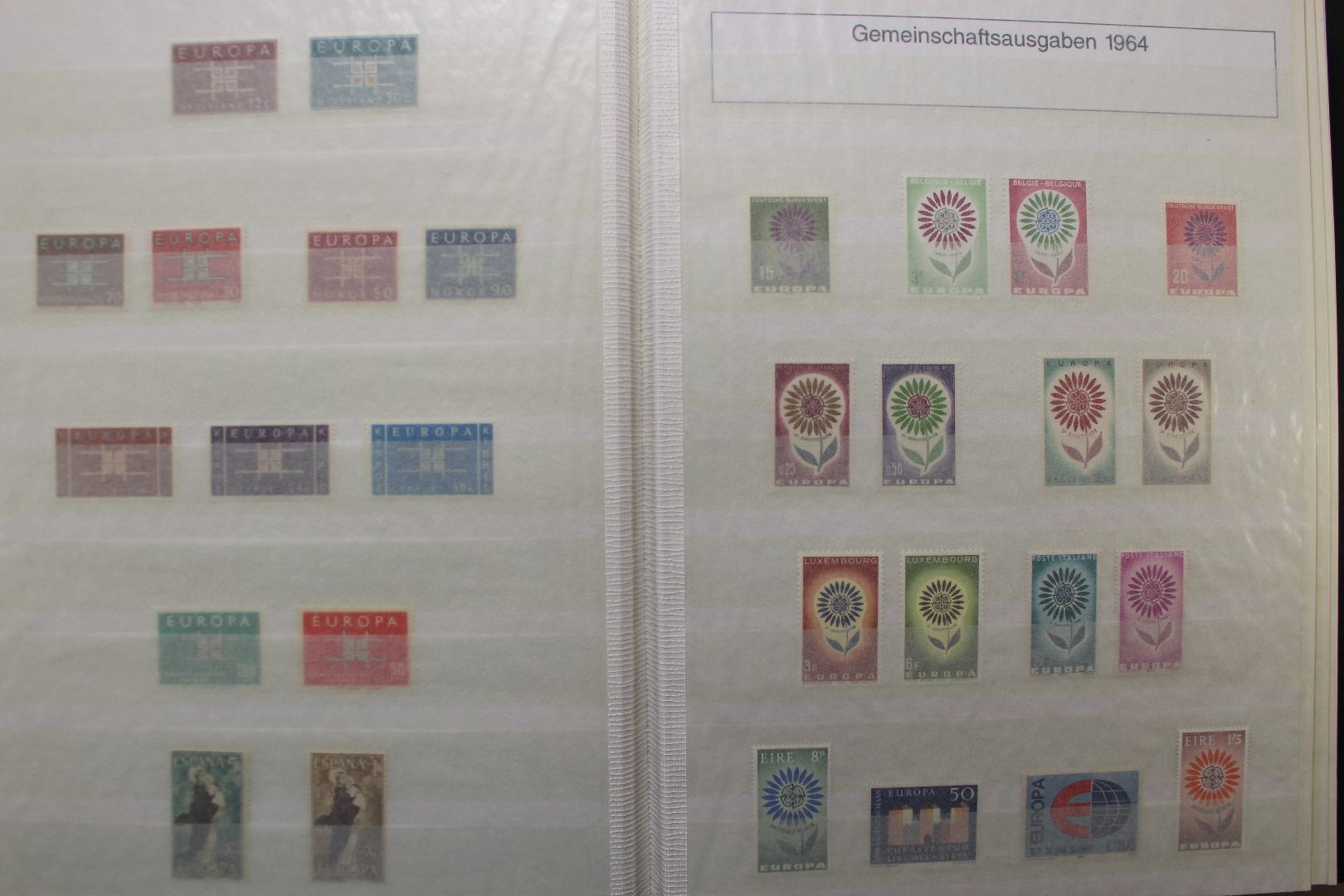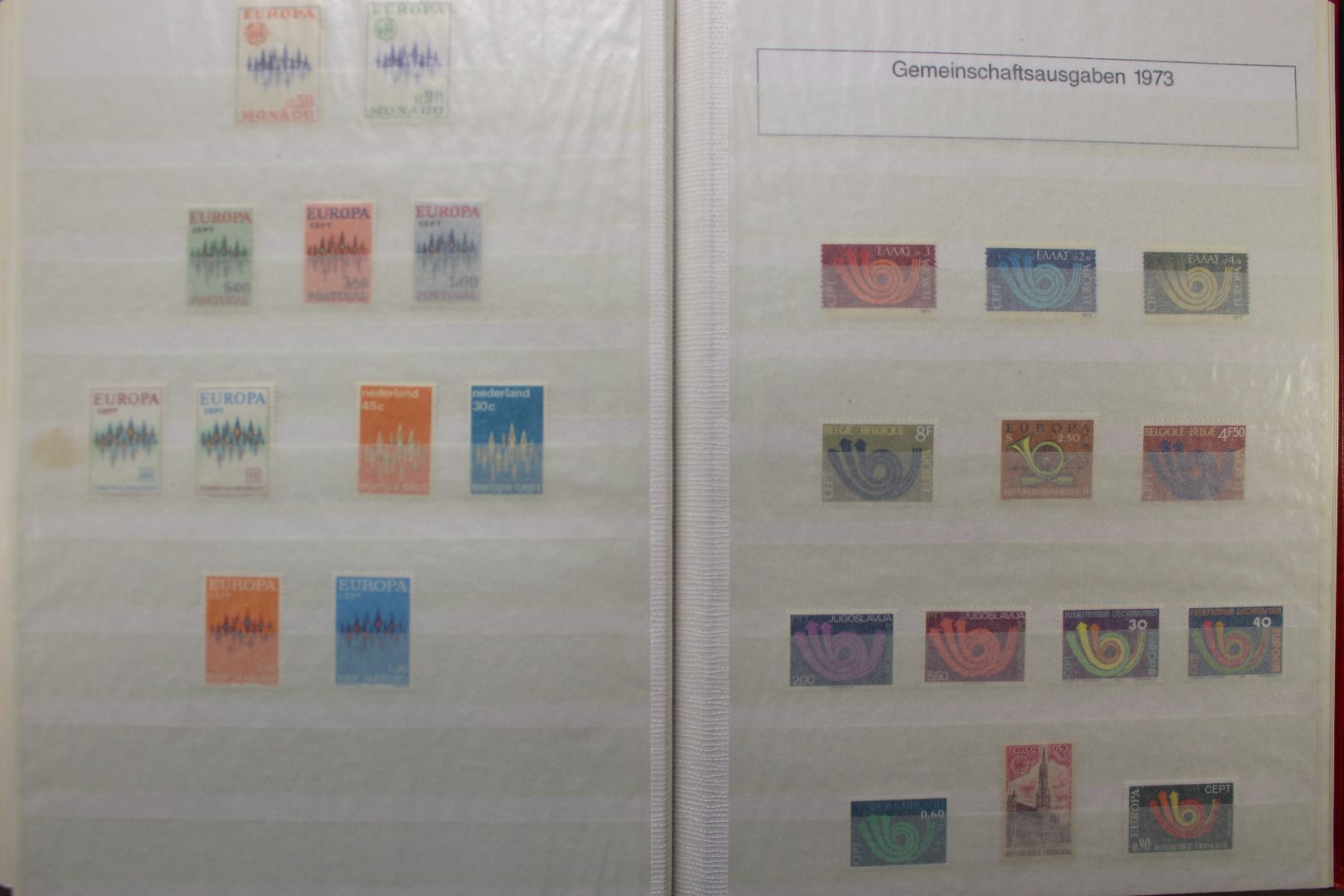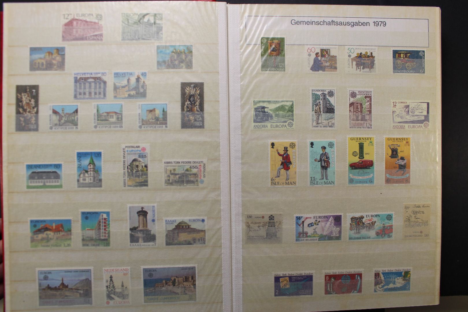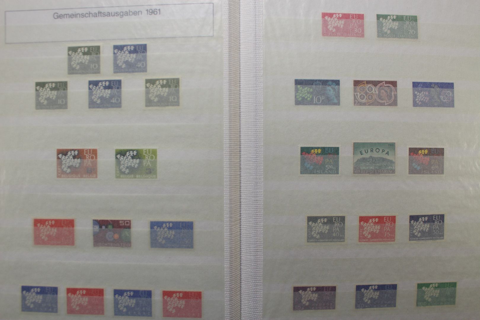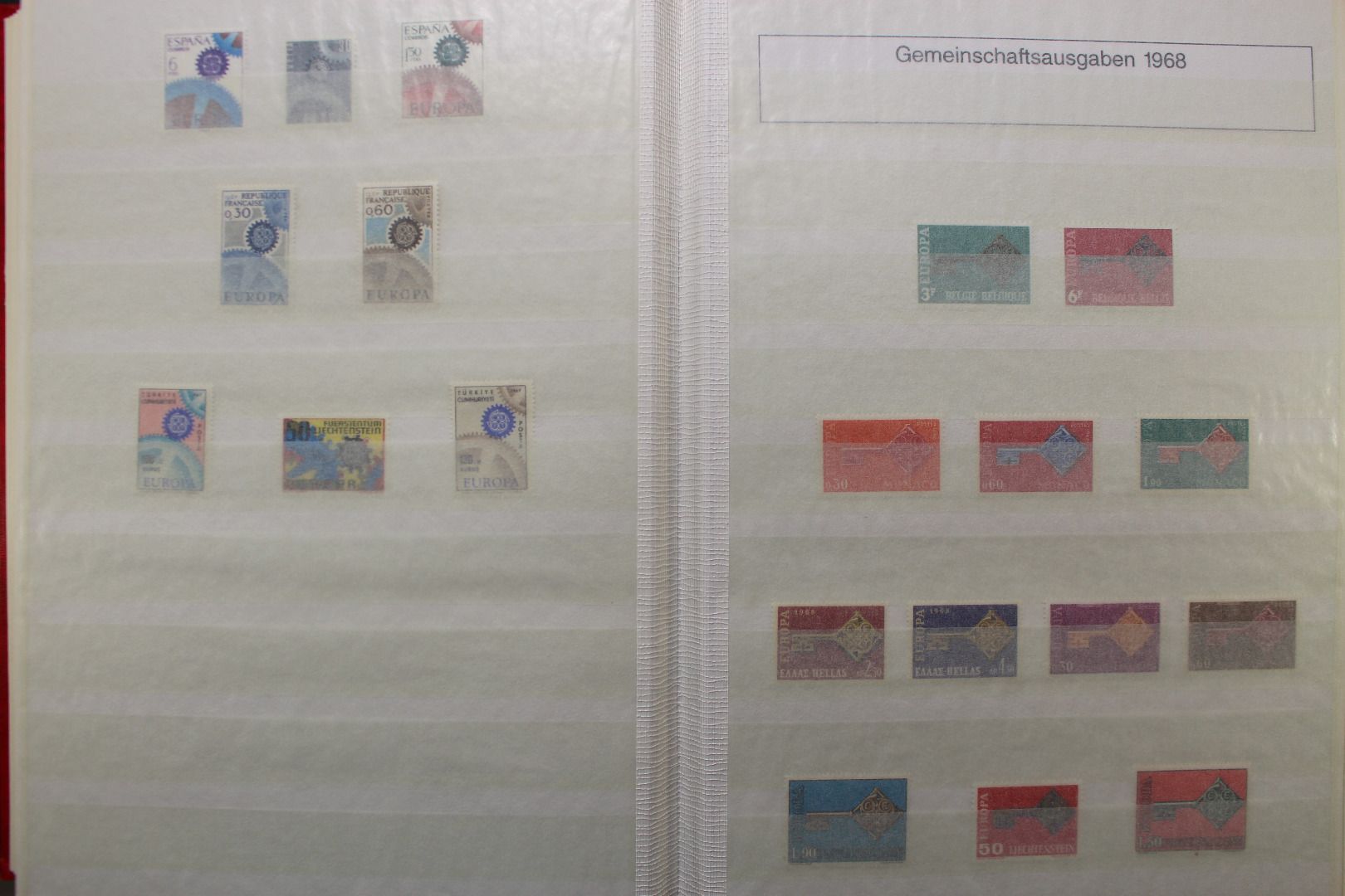 Augenscheinlich sehr umfangreiche oder sogar komplette Sammlung. Die besseren Ausgaben wie Luxemburg 1956, Liechtenstein 1960 und Spanisch Andorra 1972 sind in einwandfreier Qualität enthalten. Die Marken stammen alle aus einem Abonnement. Untergebracht in 4 Einsteckalben.