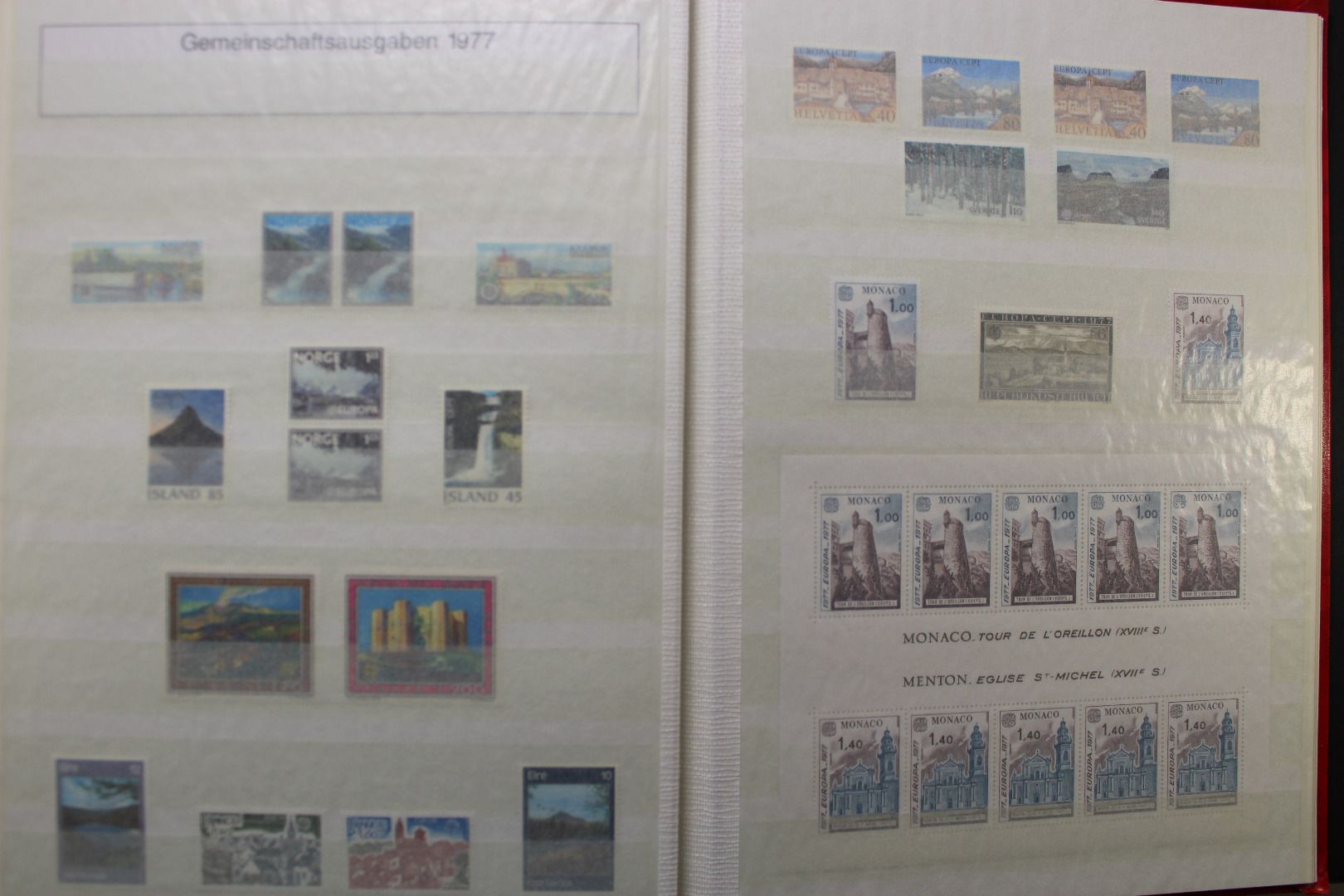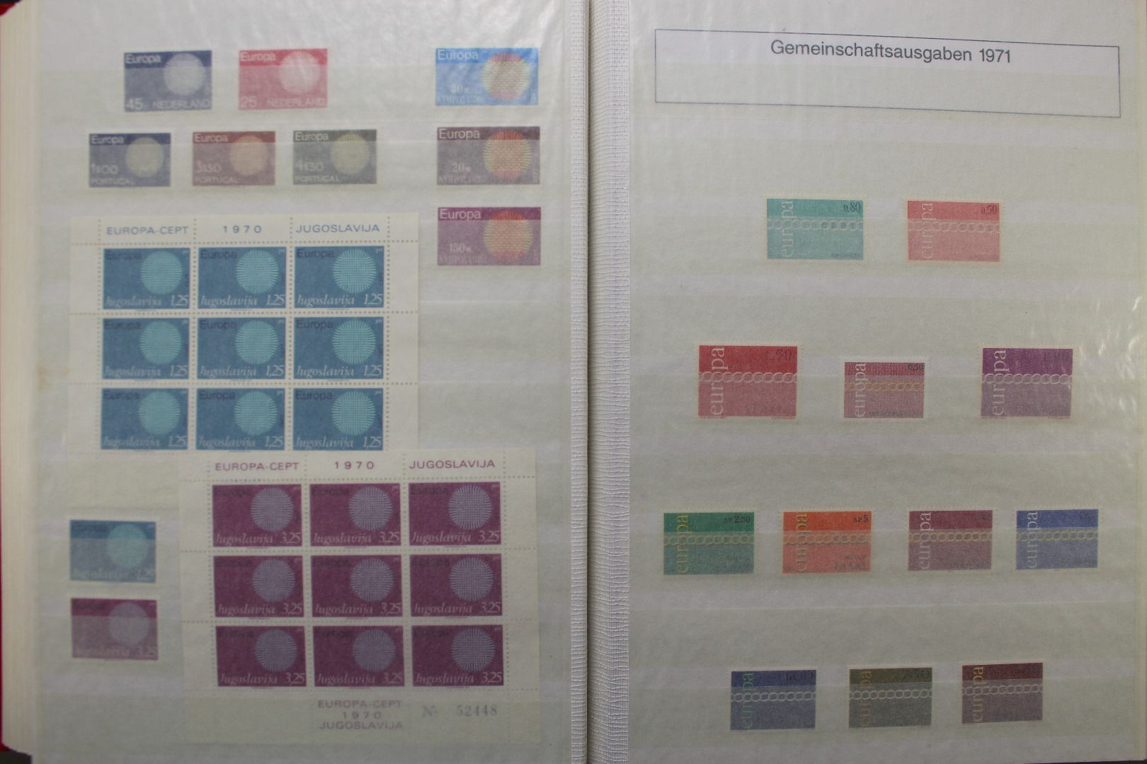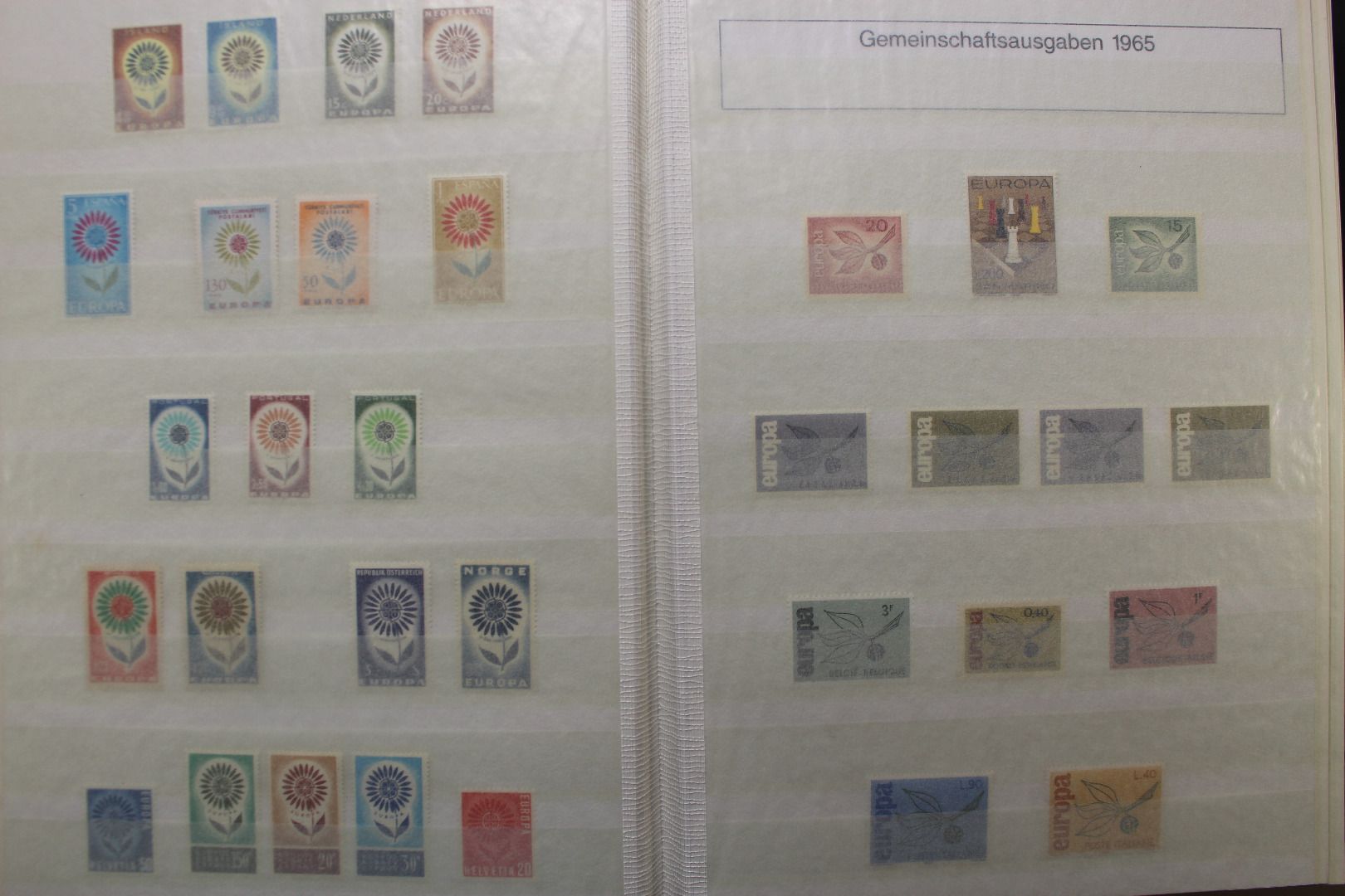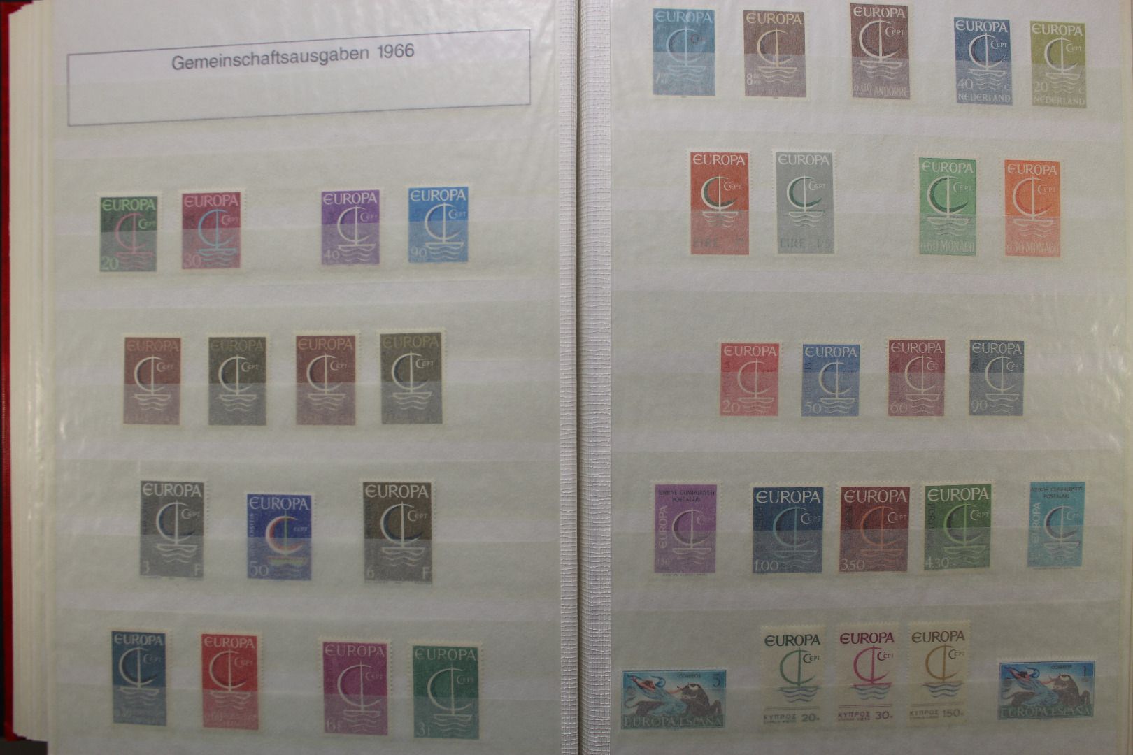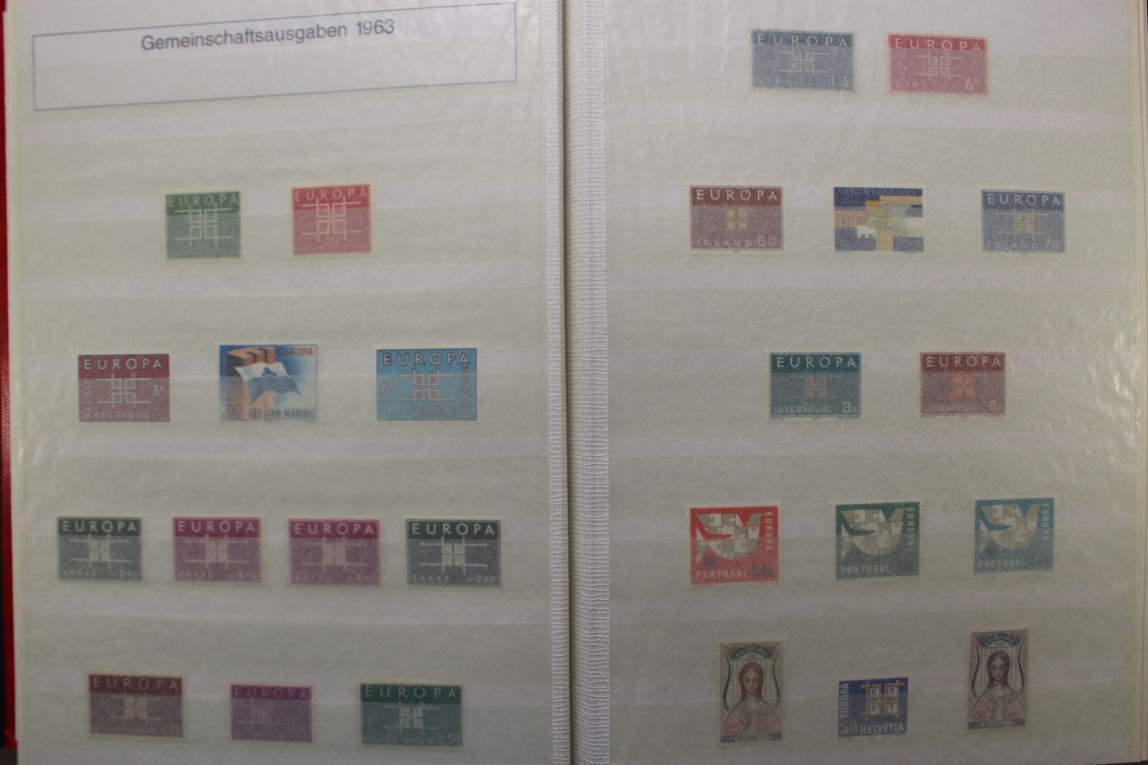 Augenscheinlich sehr umfangreiche oder sogar komplette Sammlung. Die besseren Ausgaben wie Luxemburg 1956, Liechtenstein 1960 und Spanisch Andorra 1972 sind in einwandfreier Qualität enthalten. Die Marken stammen alle aus einem Abonnement. Untergebracht in 4 Einsteckalben.