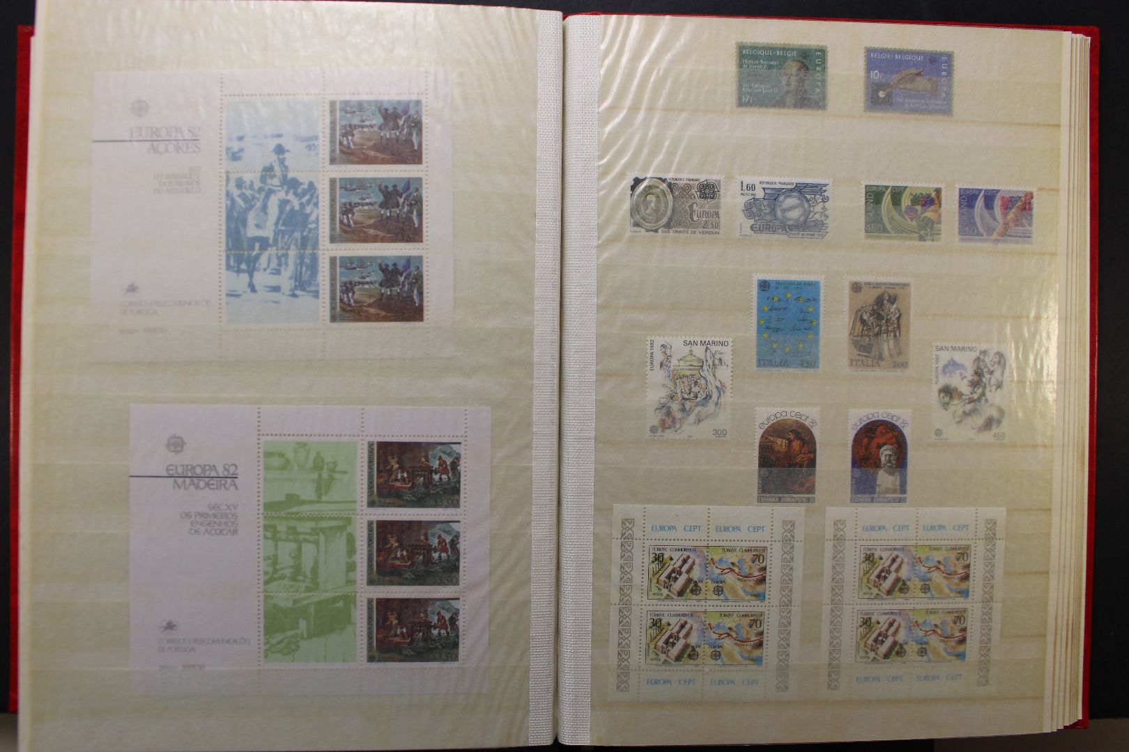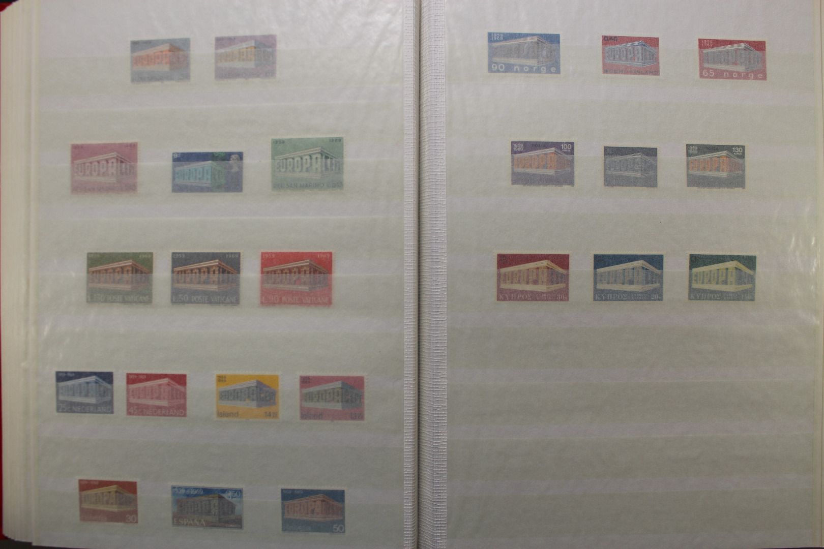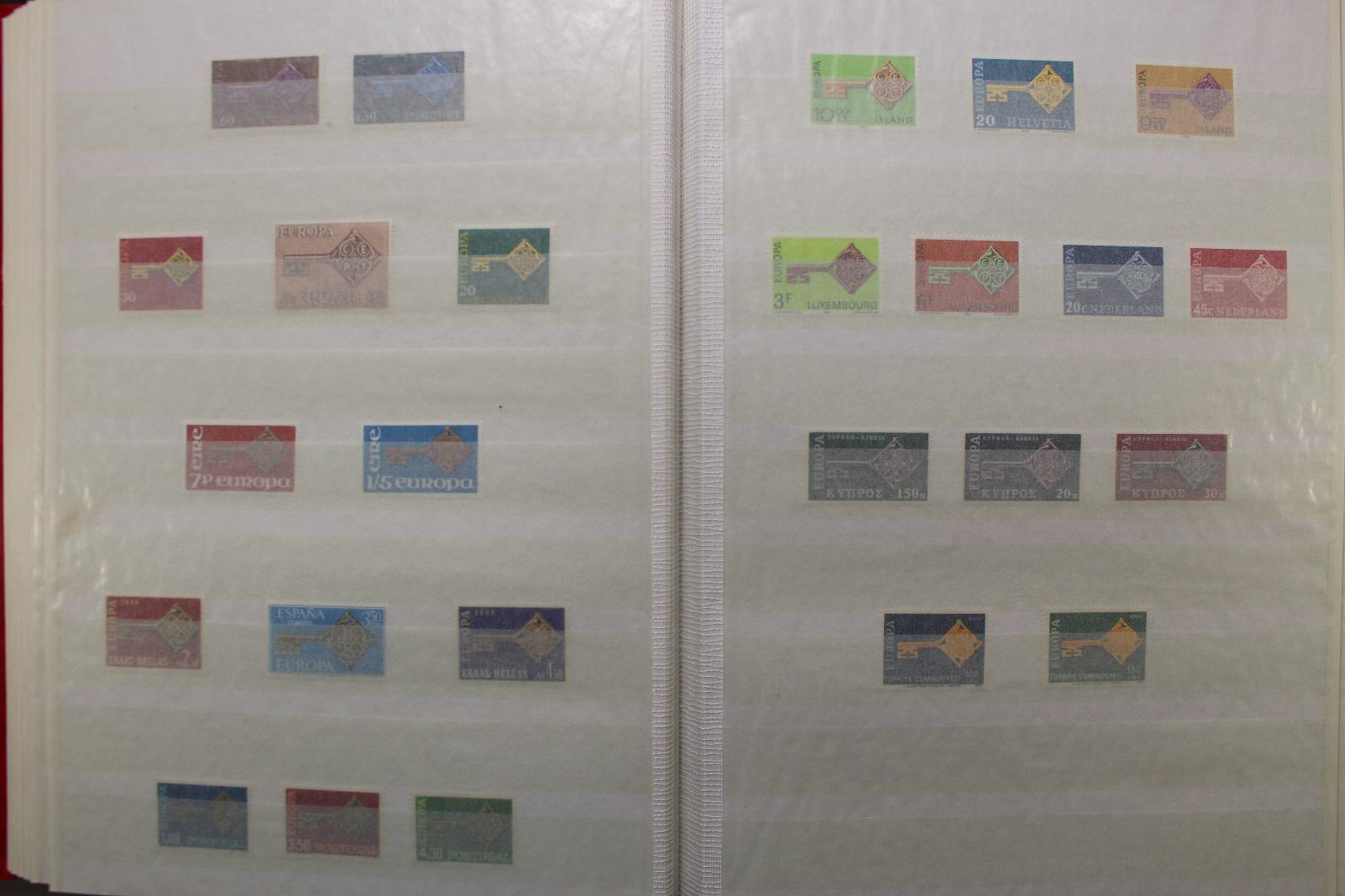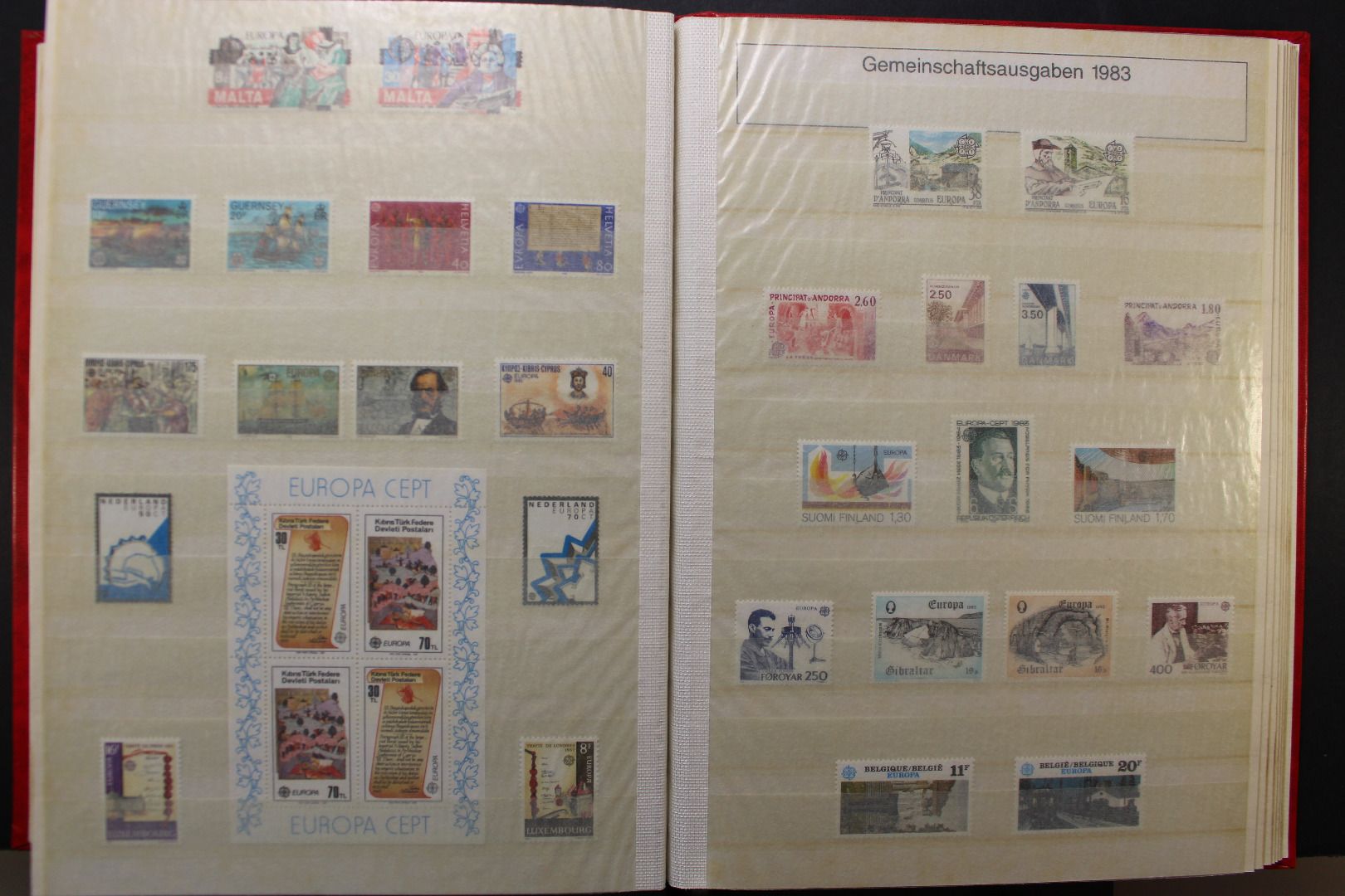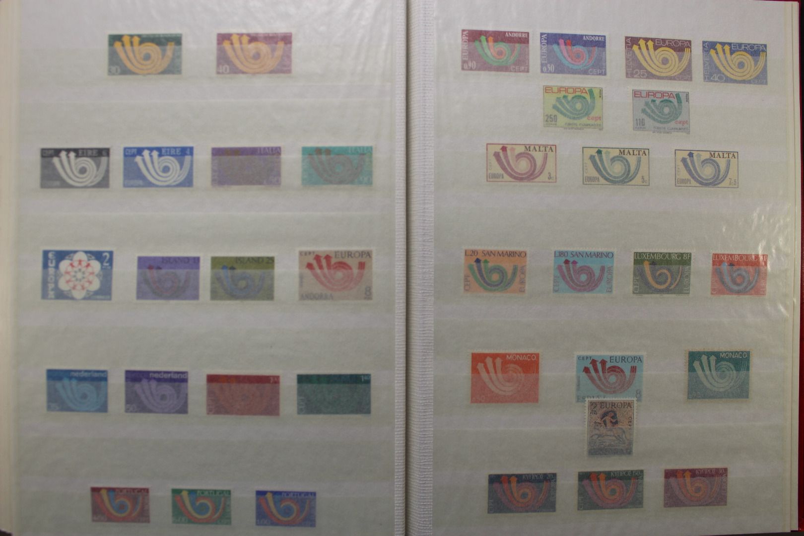 Augenscheinlich sehr umfangreiche oder sogar komplette Sammlung. Die besseren Ausgaben wie Luxemburg 1956, Liechtenstein 1960 und Spanisch Andorra 1972 sind in einwandfreier Qualität enthalten. Die Marken stammen alle aus einem Abonnement. Untergebracht in 4 Einsteckalben.