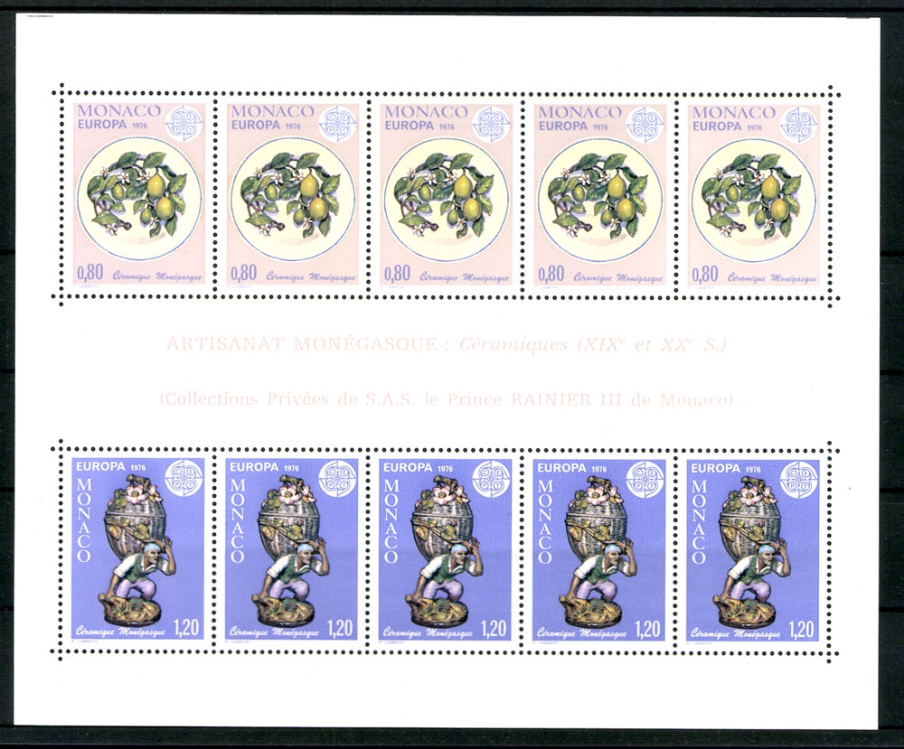 Kunsthandwerk, Monaco mit Block und Einzelmarken.
