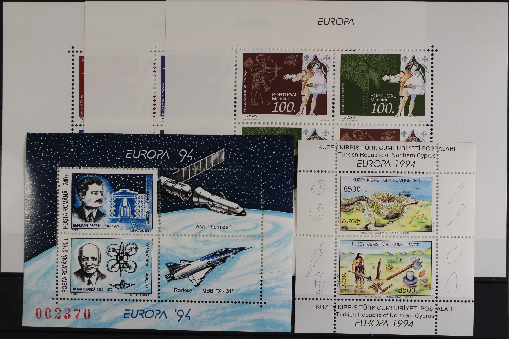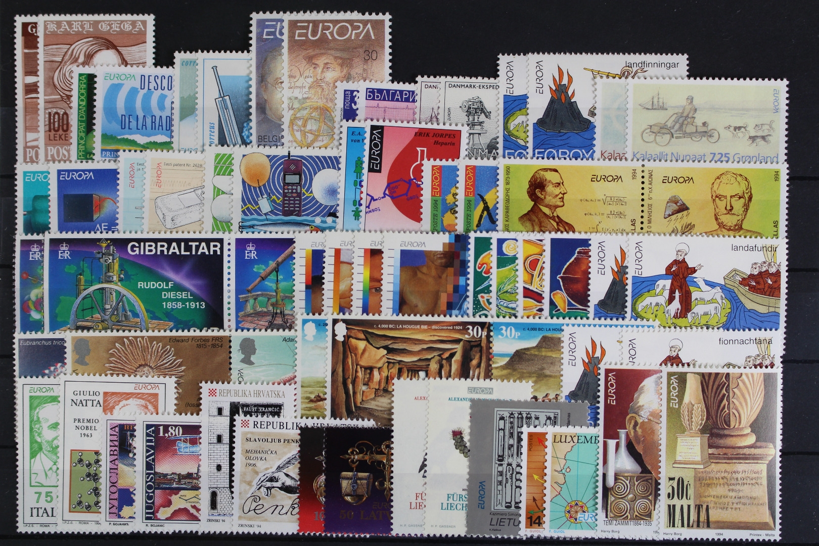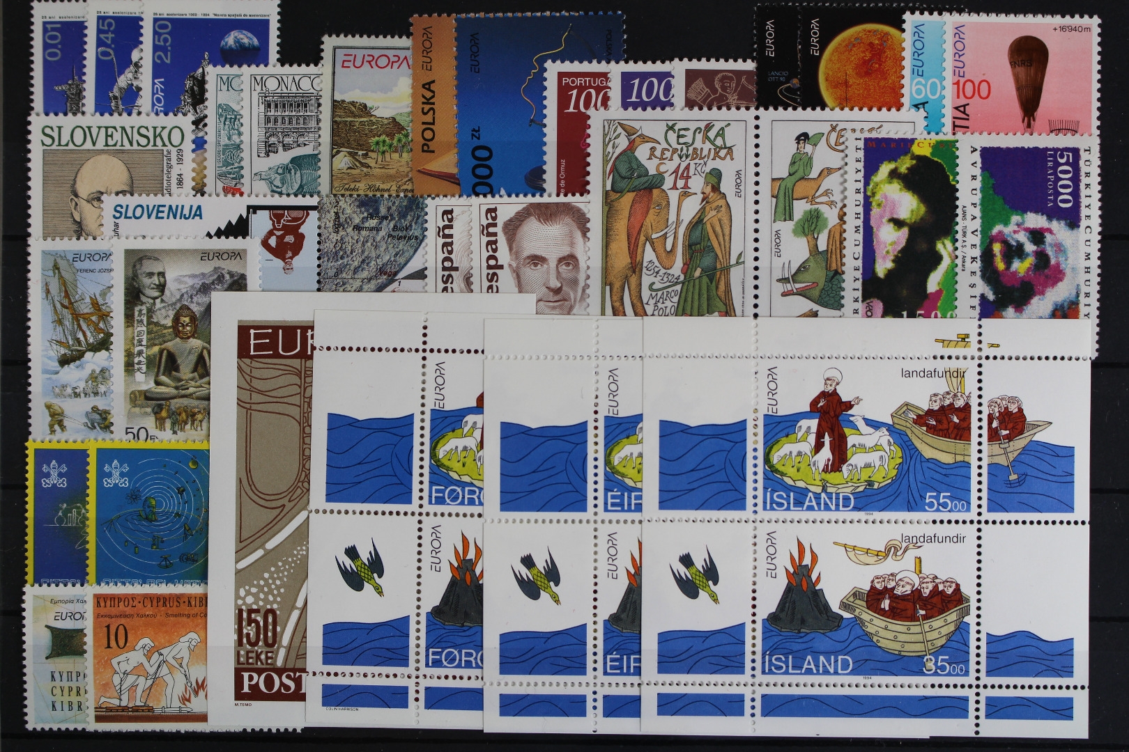 Entdeckungen und Erfindungen ohne die Länder: Kroatische Post Mostar. Zusätzlich zu den Blockausgaben sind auch die Blockeinzelmarken von Färöer, Irland, Island, Monaco, Portugal, Azoren und Madeira enthalten. Griechenland nur in einer Zähnungsvariante.