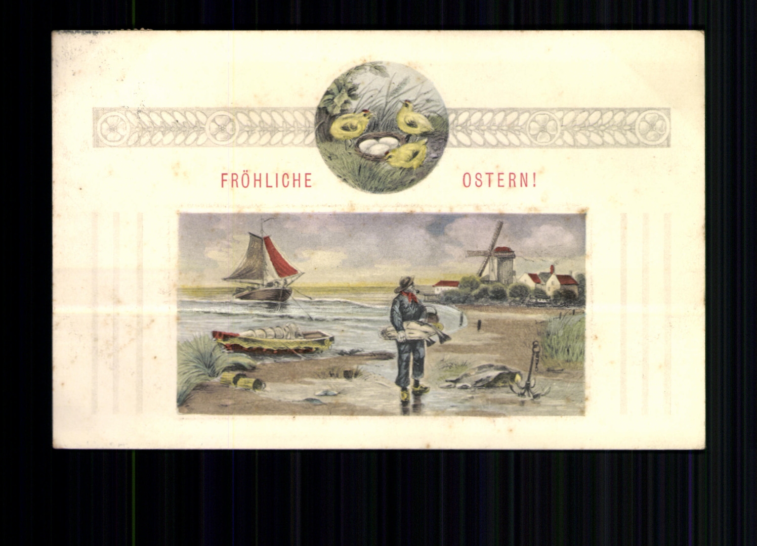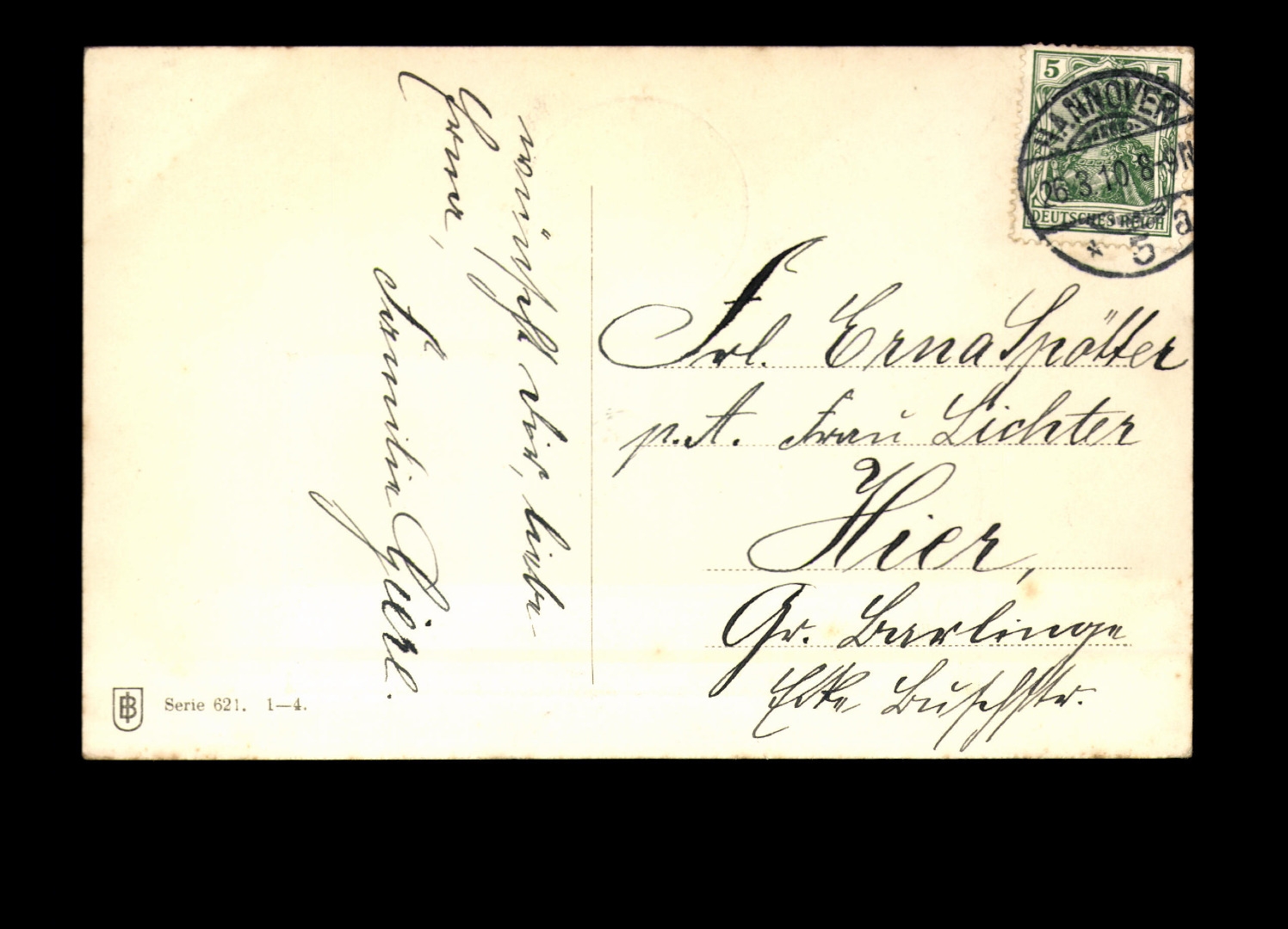 Prägekarte, gelaufen, Ecken bestoßen, leicht fleckig.