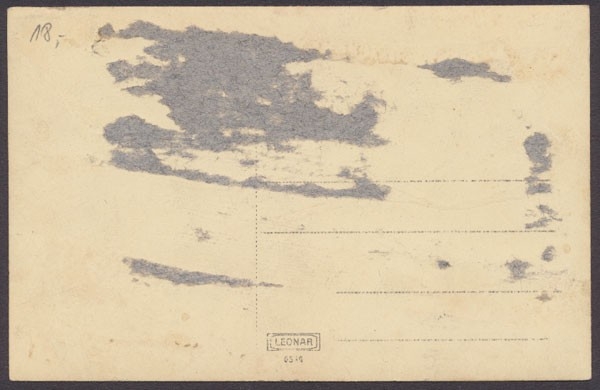 nicht gelaufen, rückseitig starke Anhaftungen, Ecken bestoßen, leicht fleckig