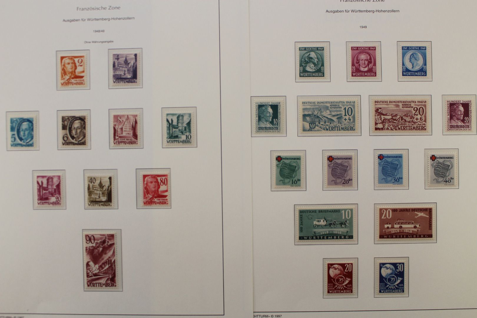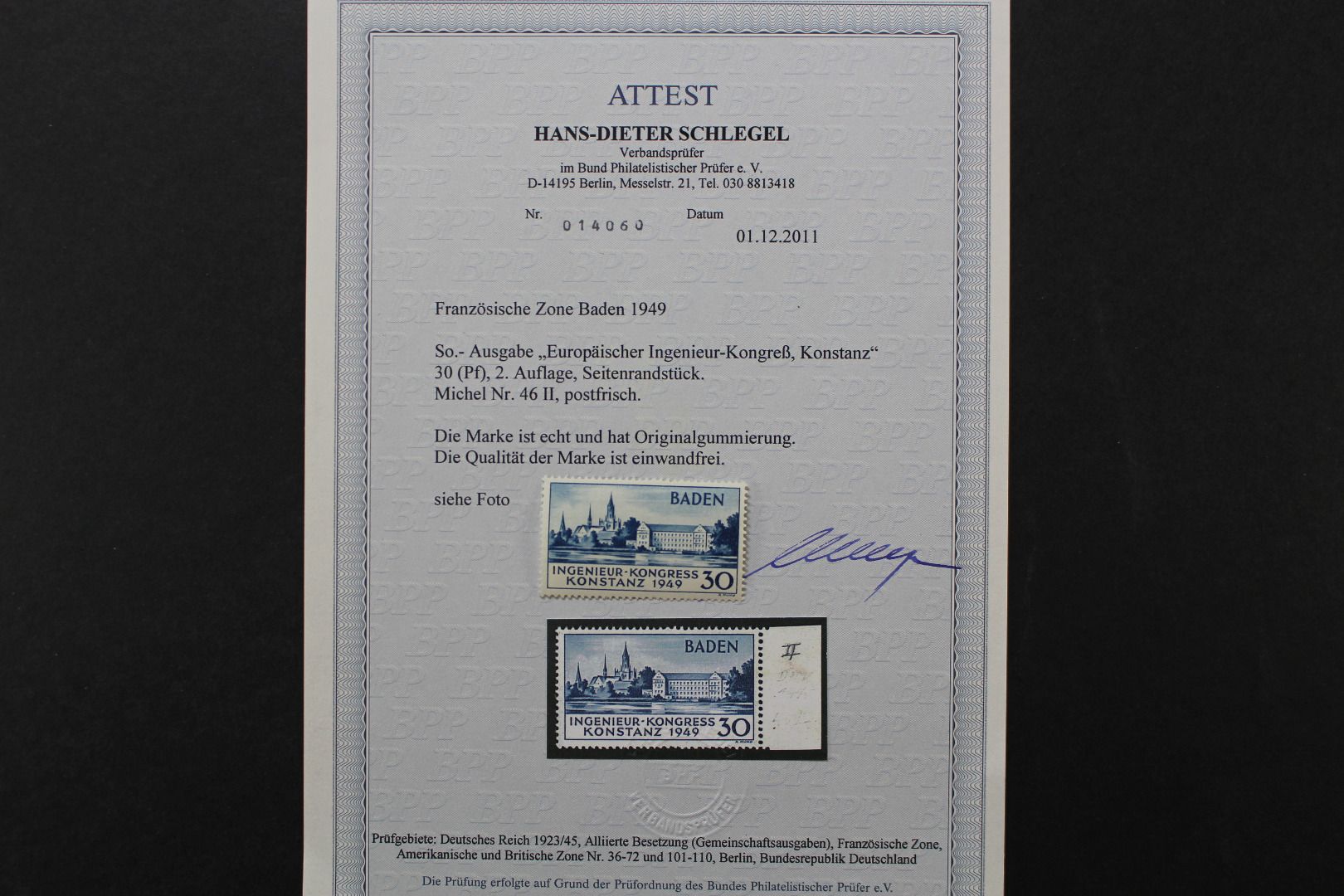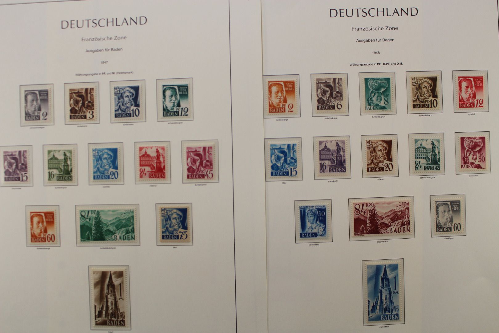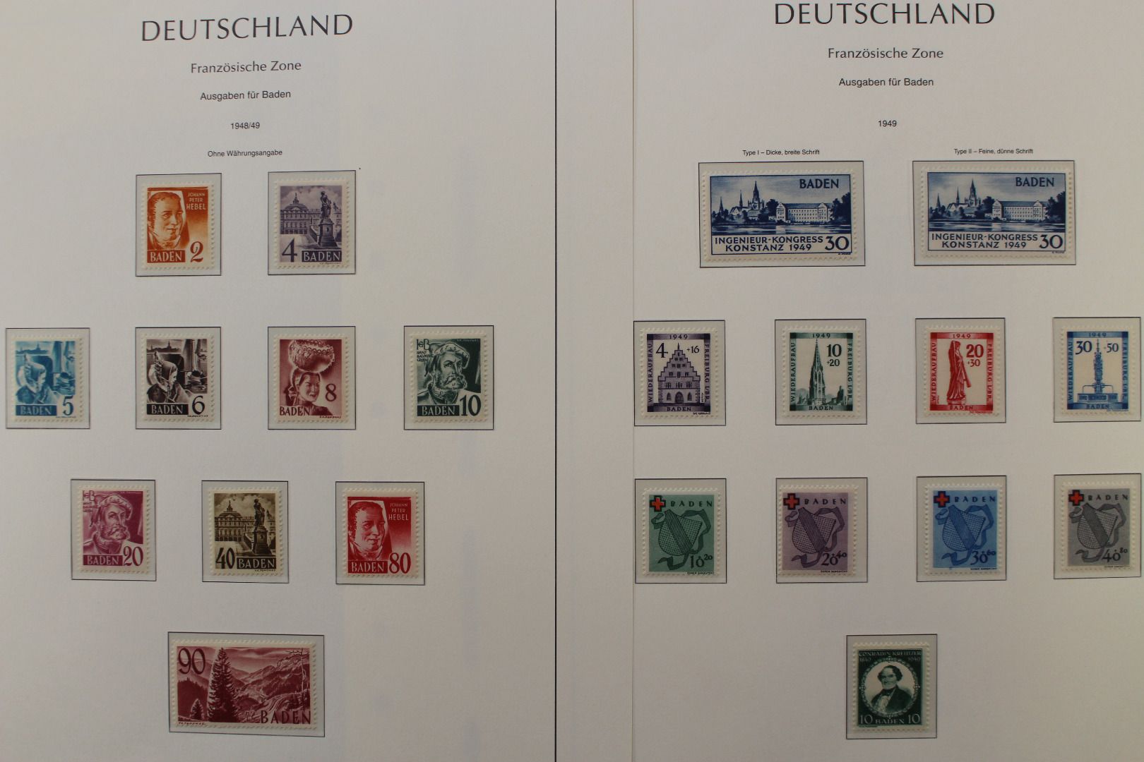 In den Hauptnummer komplette postfrische Sammlung. Zusätzlich ist die Baden 46 II (Konstanz II) enthalten. Dieser Marke liegt ein BPP-Fotoattest von Schlegel bei. Der Seitenrand wurde abgetrennt (passte wohl nicht ins Album). Die Zähnung stimmt aber mit der Abbildung auf dem Attest überein. Sehr gute einwandfreie Qualität. Untergebracht auf Leuchtturm Vordruckblättern.