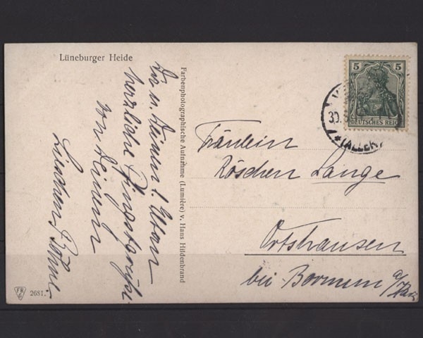 Karte 1914 gelaufen, Ecken leicht bestoßen, leicht fleckig