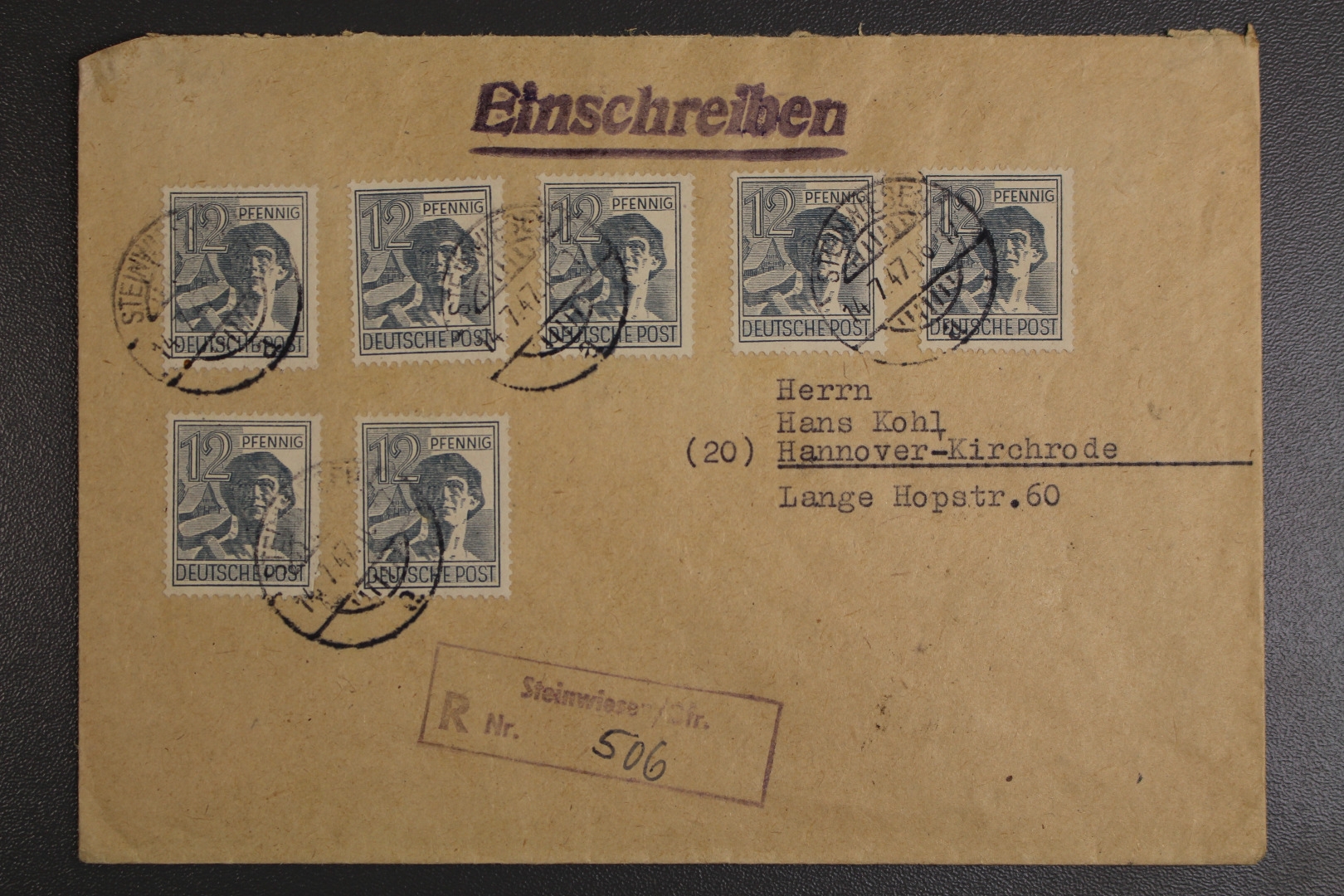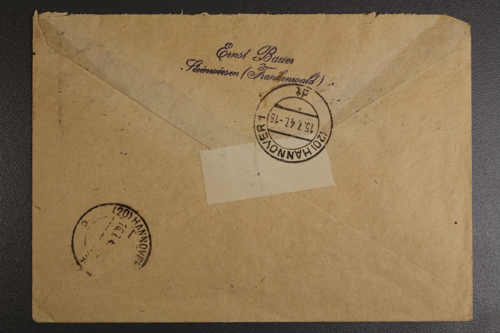 Bedarfsbeleg mit den üblichen Alterungsspuren, oben geöffnet. Gelaufen ab Steinwiesen/Ofr. nach Hannover.