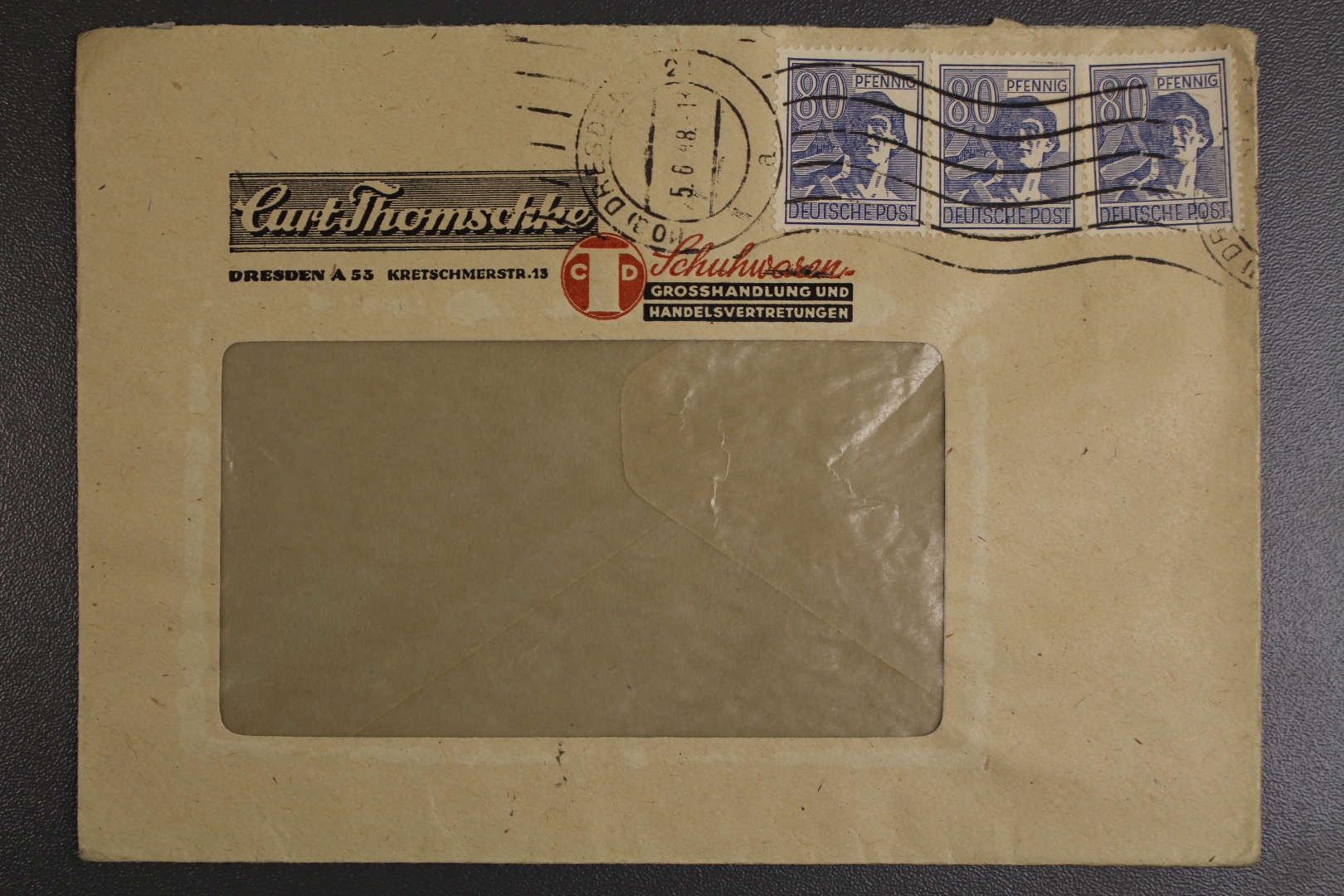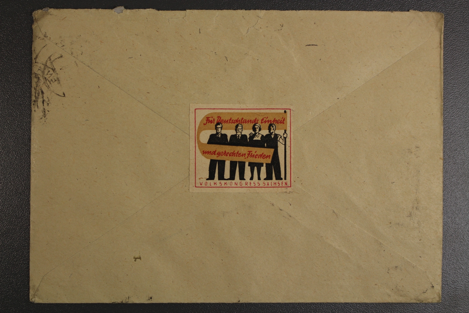 Bedarfsbeleg mit den üblichen Alterungsspuren, oben geöffnet. Fensterumschlag. Rückseitig Vignette "Volkskongress Sachsen".
