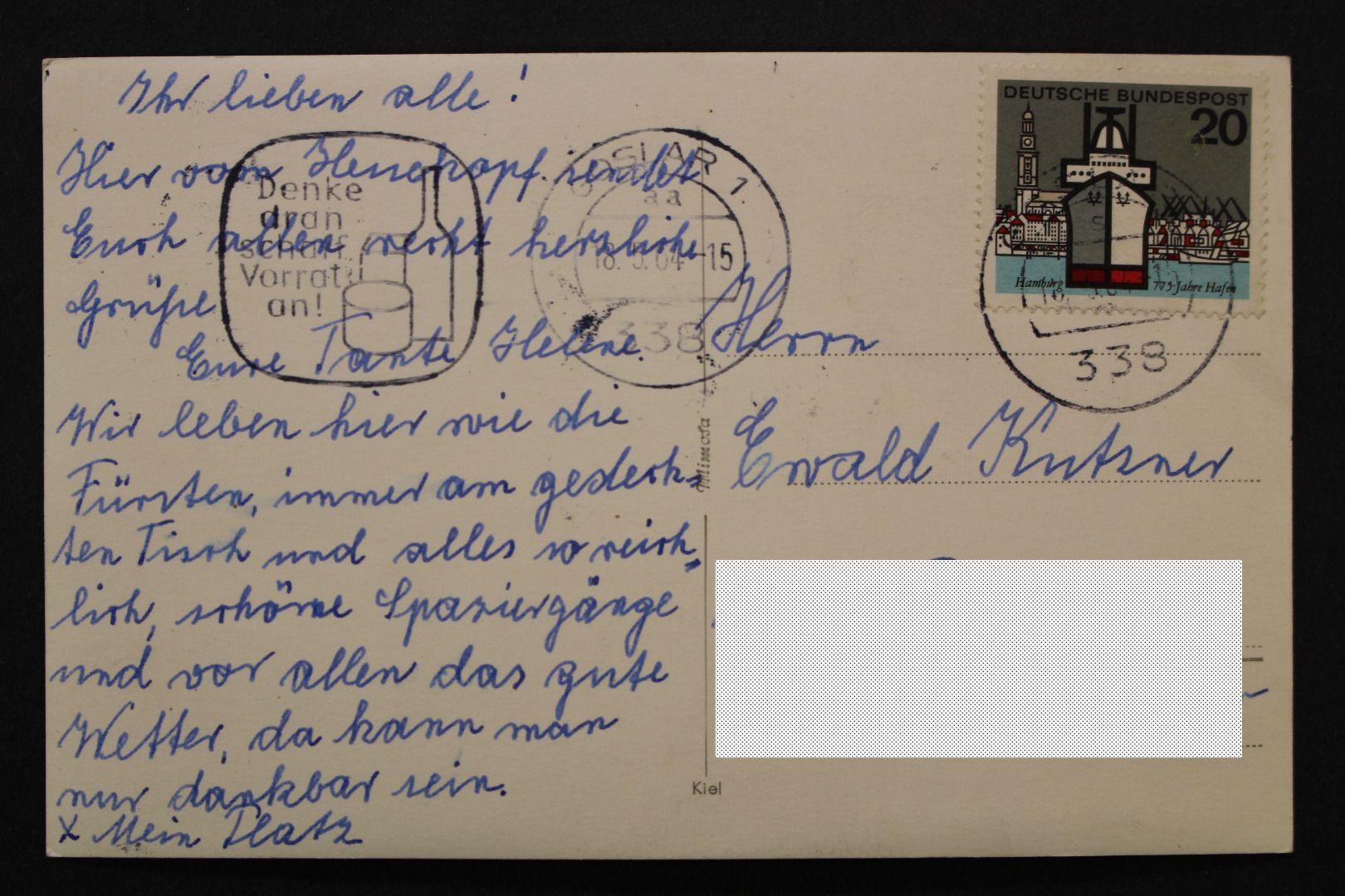 Karte gelaufen, etwas bestoßen, leicht fleckig
