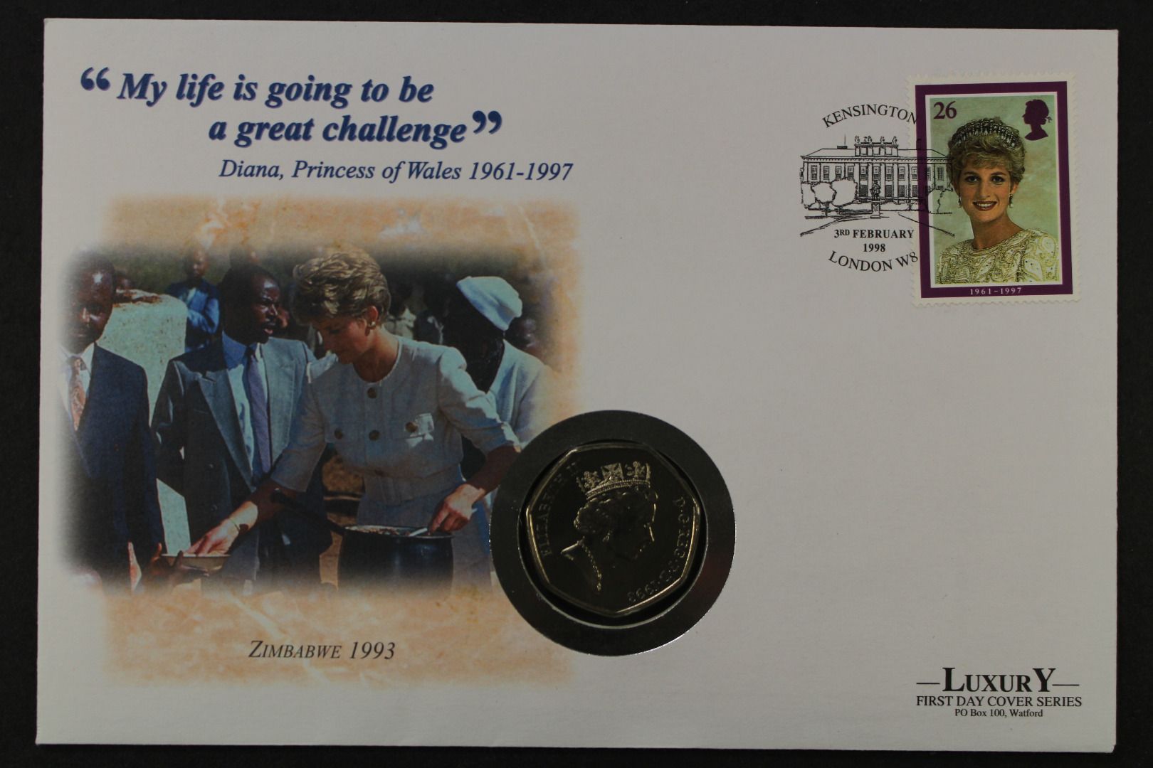 Großbritannien, Diana challenge, Zimbabwe 1998, Numisbrief