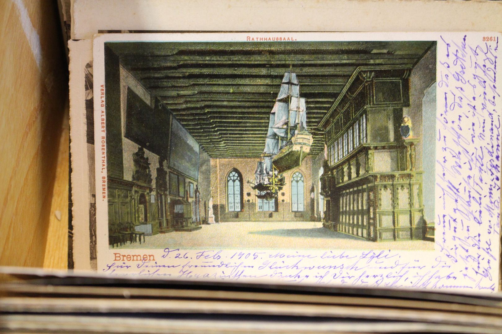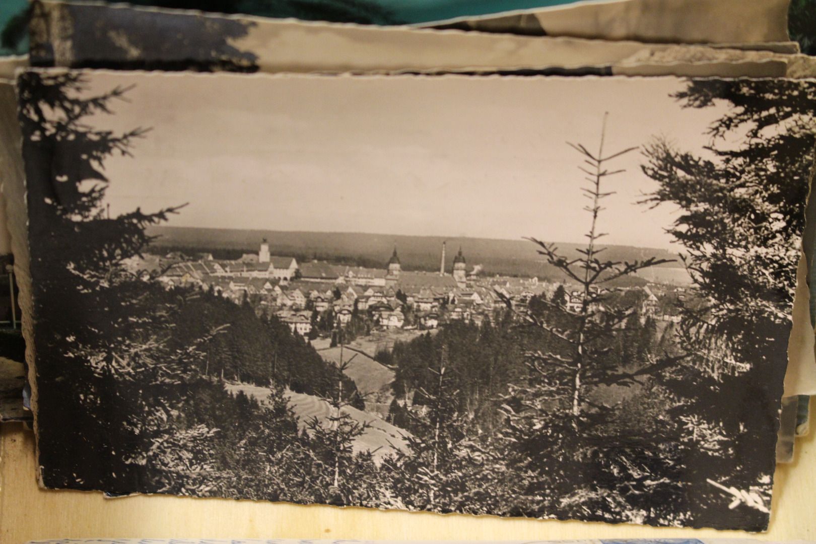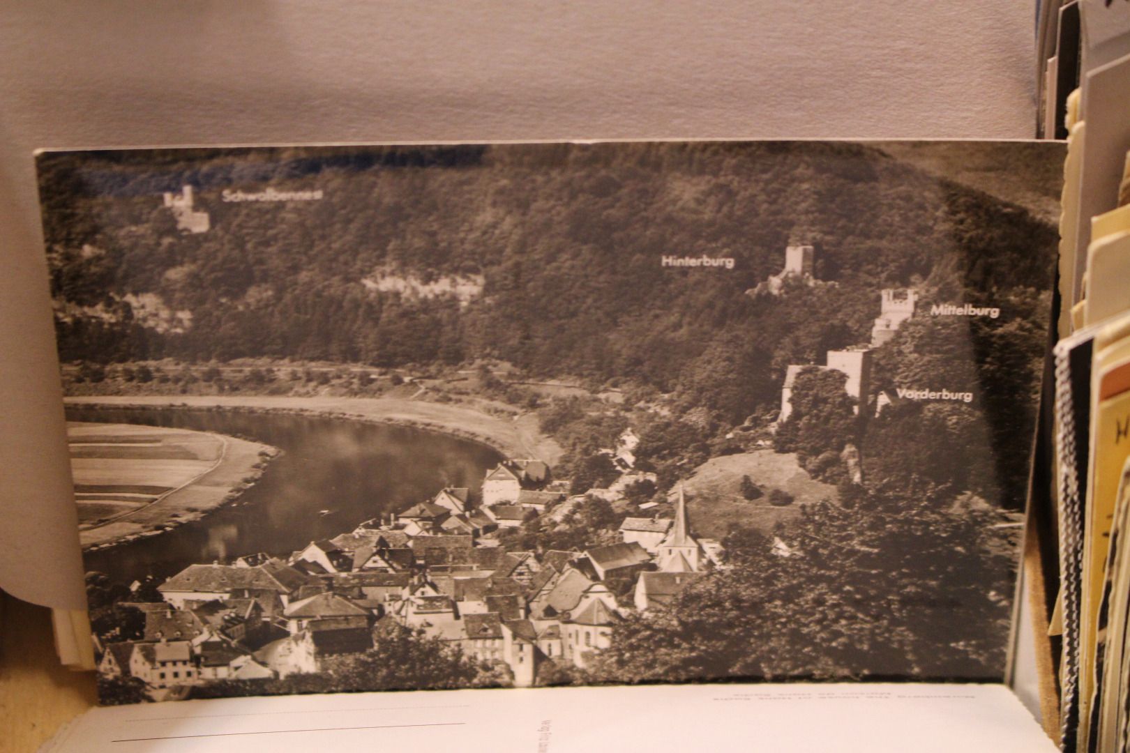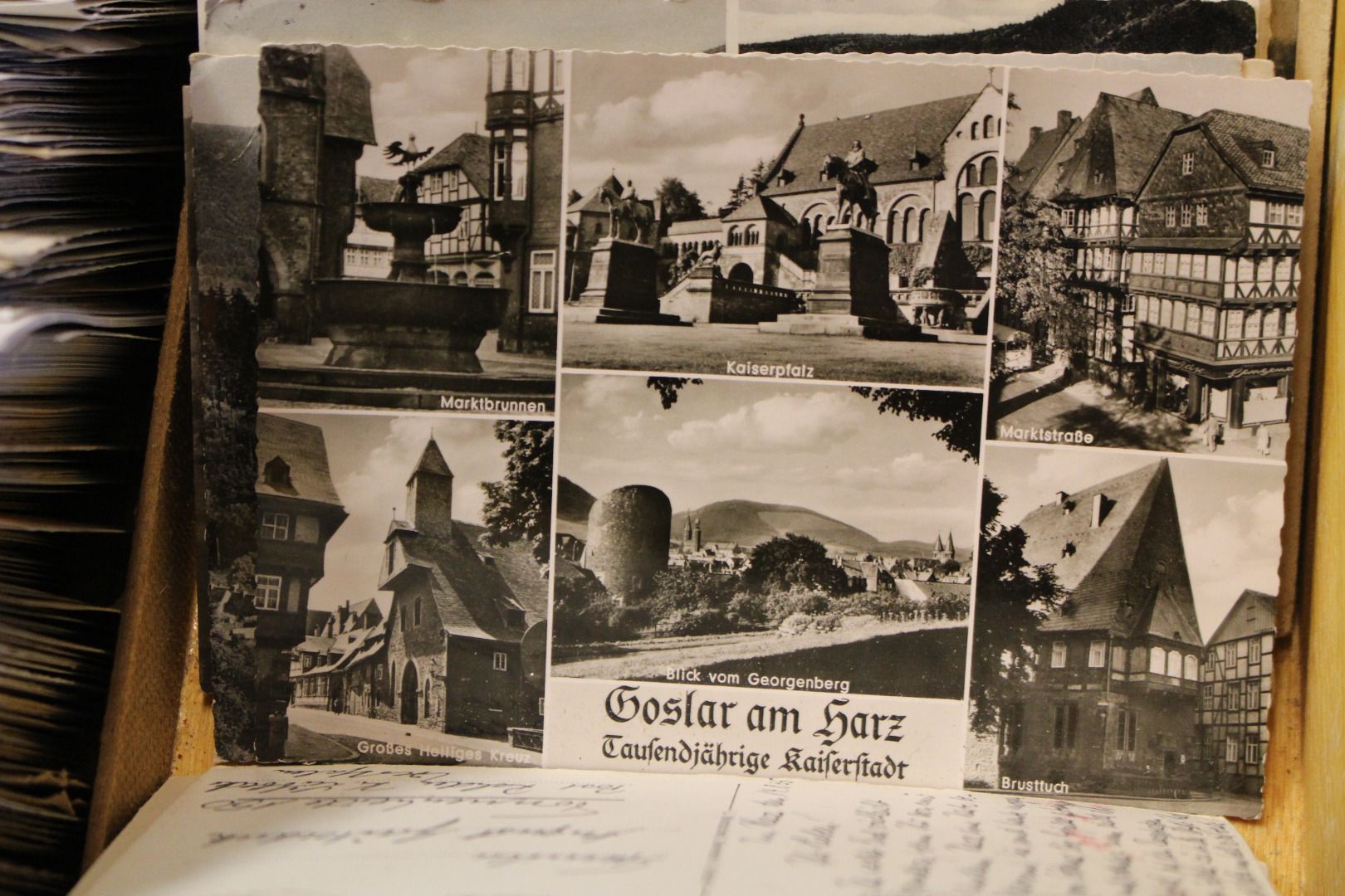 Gesammelt wurden Karten ab ca. 1900 bis in die 1970er Jahre. Etwas sicher auch aus späteren Jahren. Der Schwerpunkt dürfte ab den 1930er bis 1960er Jahren sein. Der Posten ist nach Alphabet vorsortiert - durch das Verpacken aber ganz sicher etwas durcheinander gekommen. Beim auspacken also aufpassen. Es sind gelaufene und nicht gelaufene Karten enthalten. Wir haben die Stückzahl nicht ermittelt. Die auf den Bildern sichtbaren Holzkisten werden nicht mitgeliefert. Die zusätzlichen Portokosten stehen nicht im Verhältnis zum Nutzen.