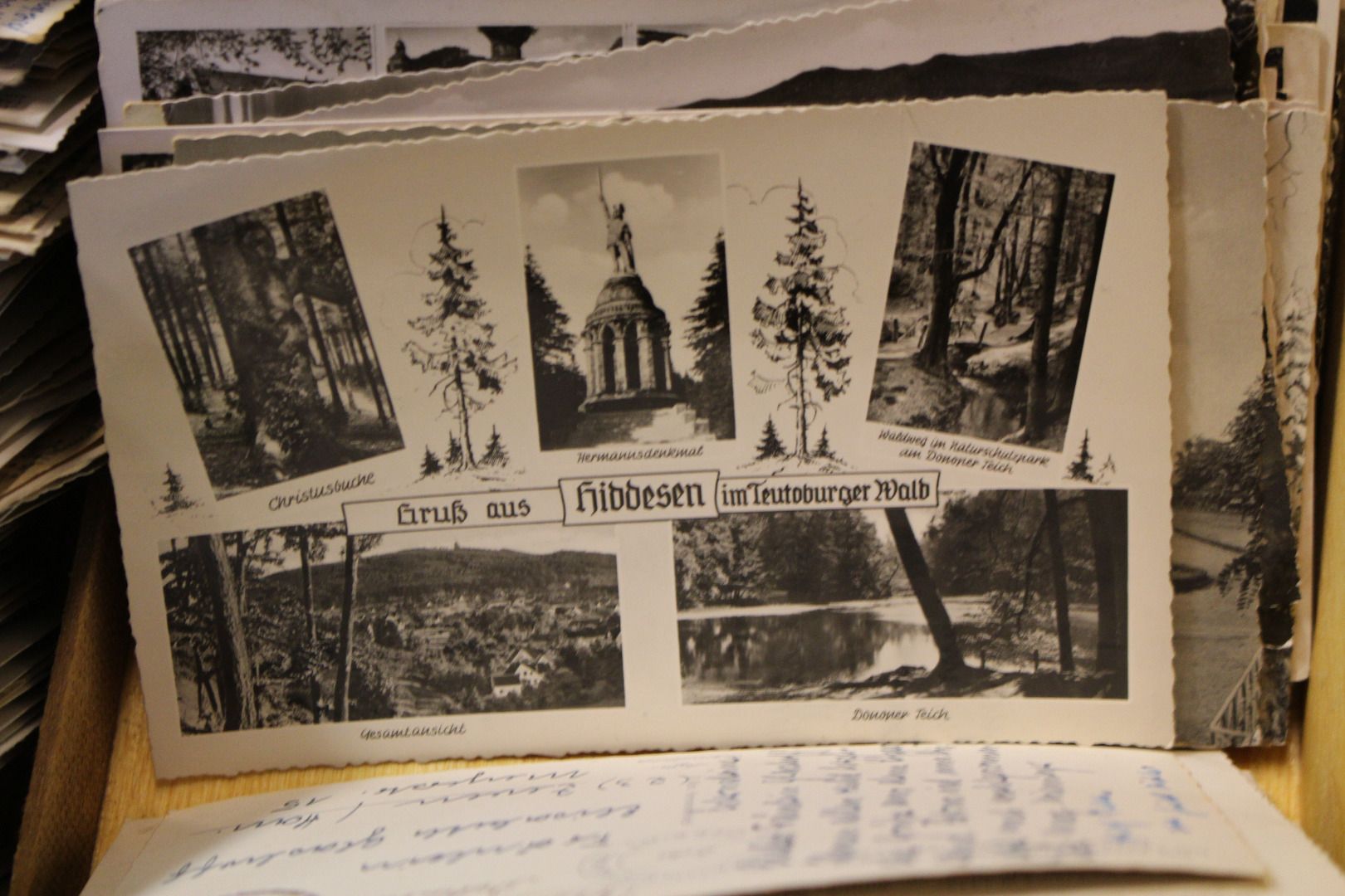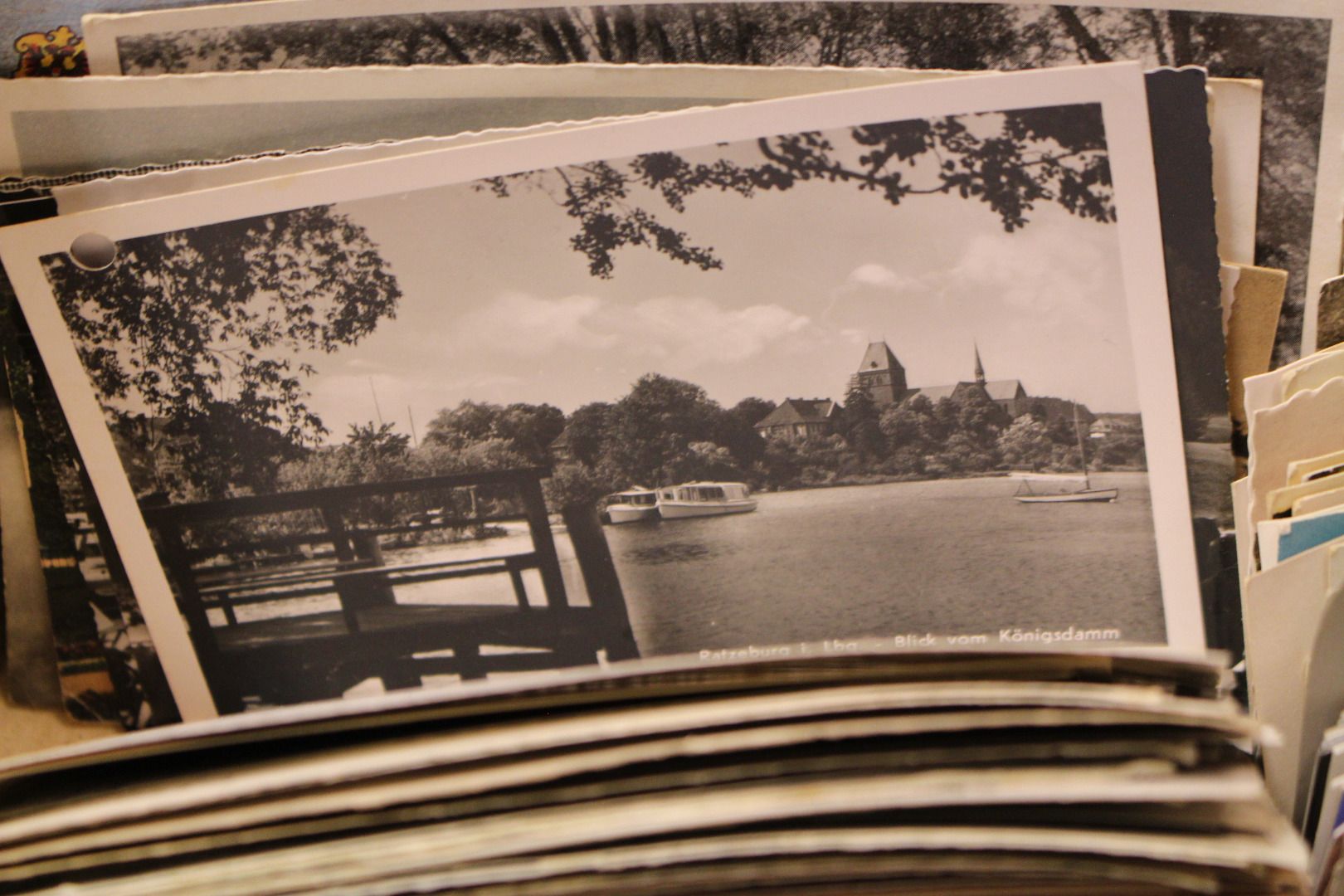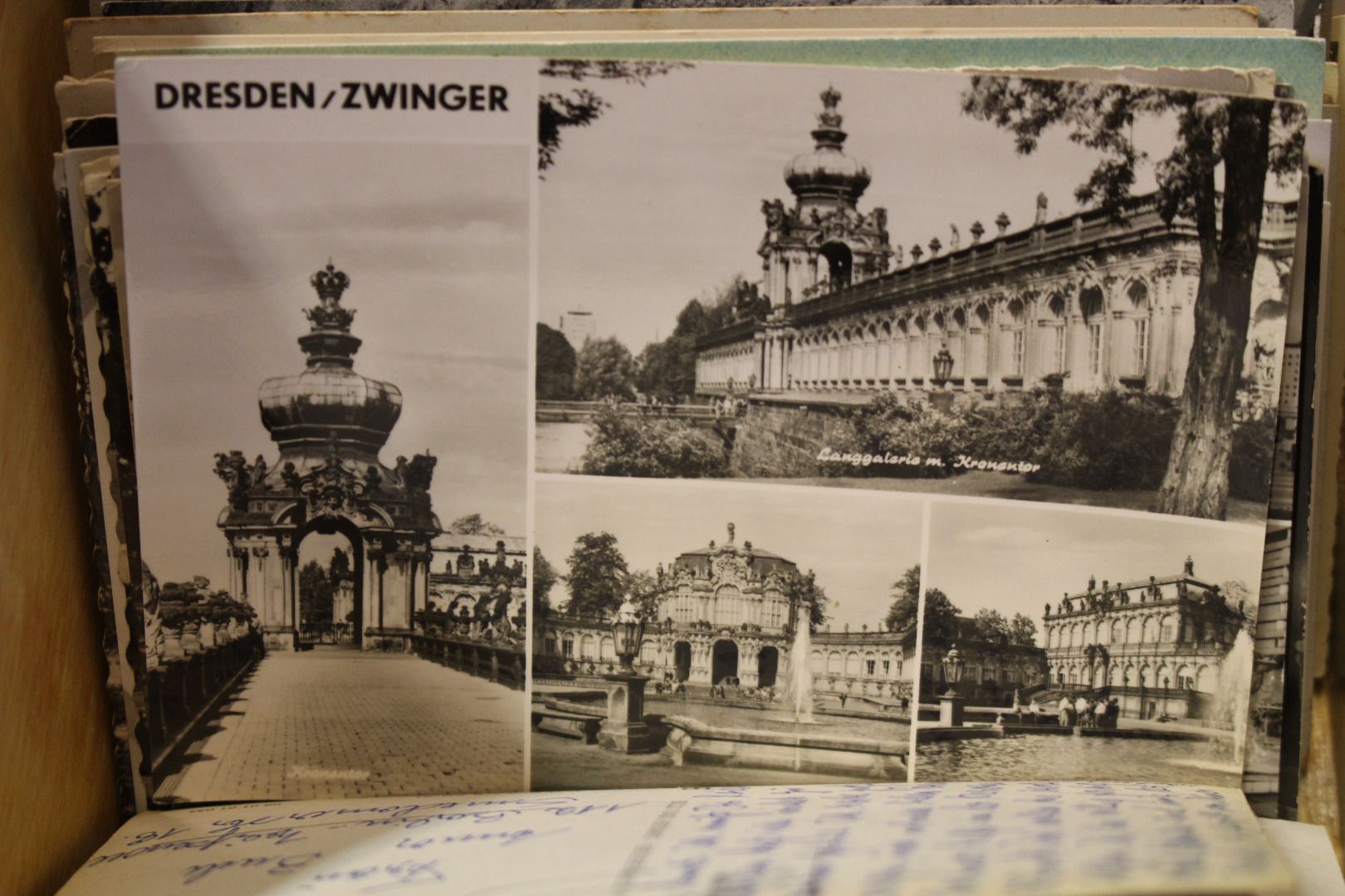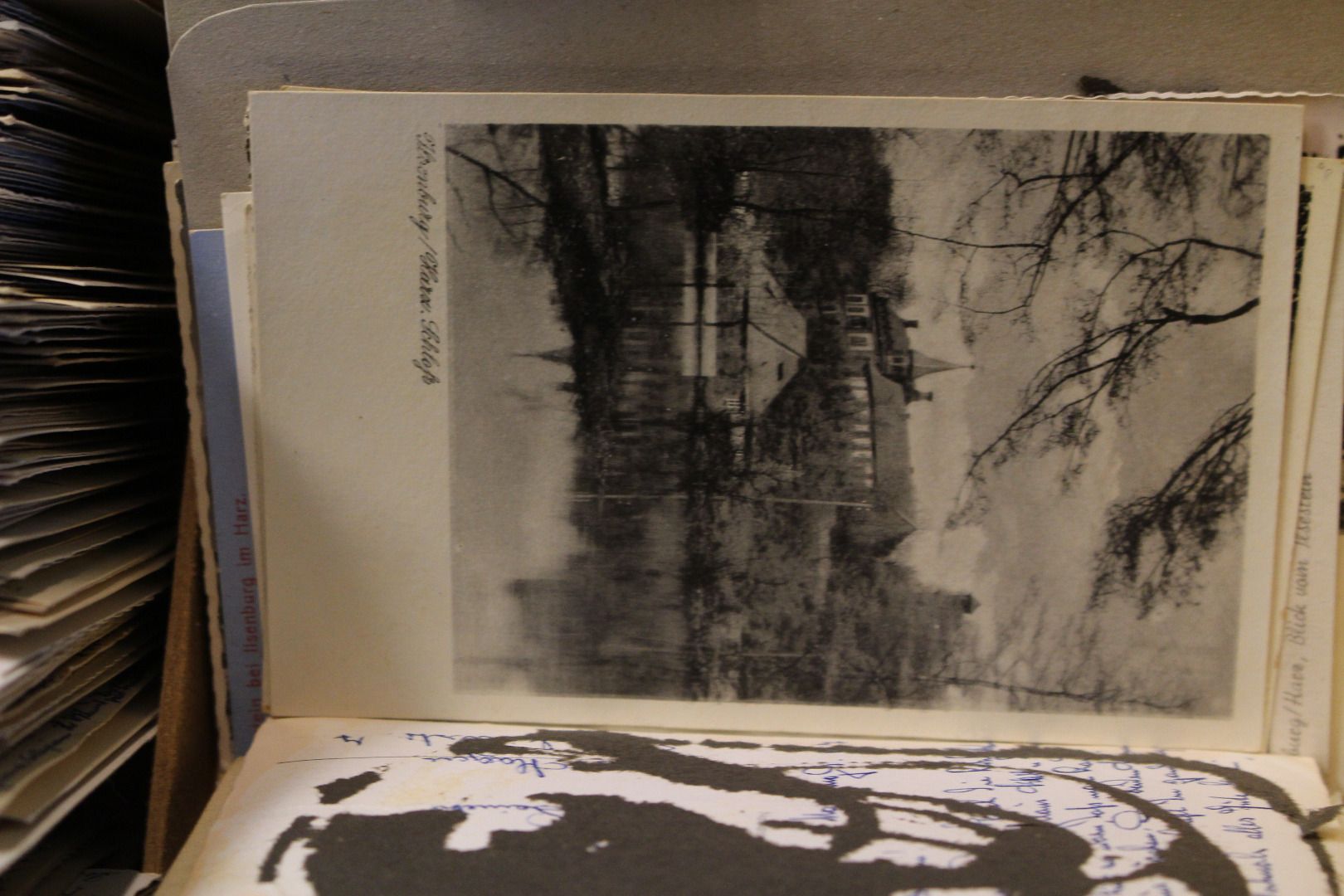Gesammelt wurden Karten ab ca. 1900 bis in die 1970er Jahre. Etwas sicher auch aus späteren Jahren. Der Schwerpunkt dürfte ab den 1930er bis 1960er Jahren sein. Der Posten ist nach Alphabet vorsortiert - durch das Verpacken aber ganz sicher etwas durcheinander gekommen. Beim auspacken also aufpassen. Es sind gelaufene und nicht gelaufene Karten enthalten. Wir haben die Stückzahl nicht ermittelt. Die auf den Bildern sichtbaren Holzkisten werden nicht mitgeliefert. Die zusätzlichen Portokosten stehen nicht im Verhältnis zum Nutzen.