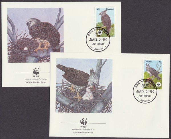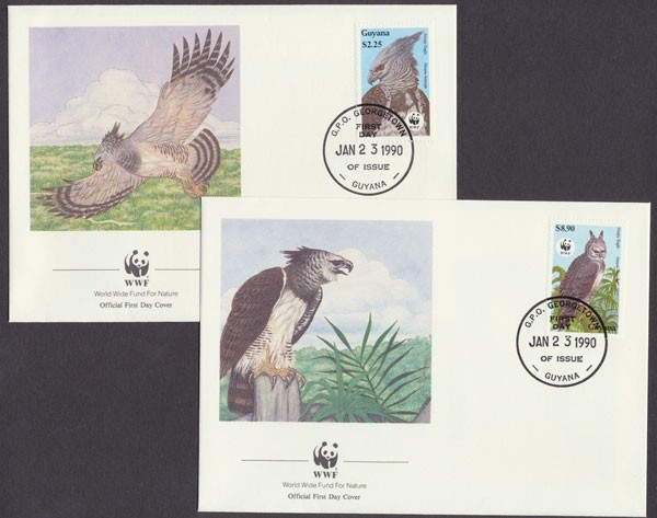 WWF 1990: Harpyie, 4 Ersttagsbriefe.
