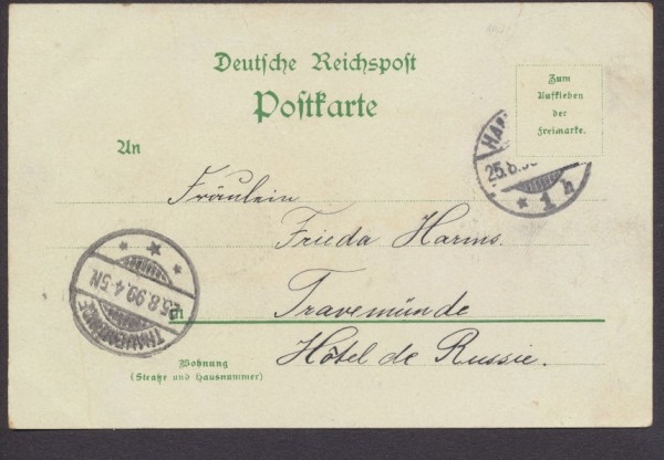1899 gelaufen, Ecken bestoßen, leicht fleckig, Marke sauber abgelöst