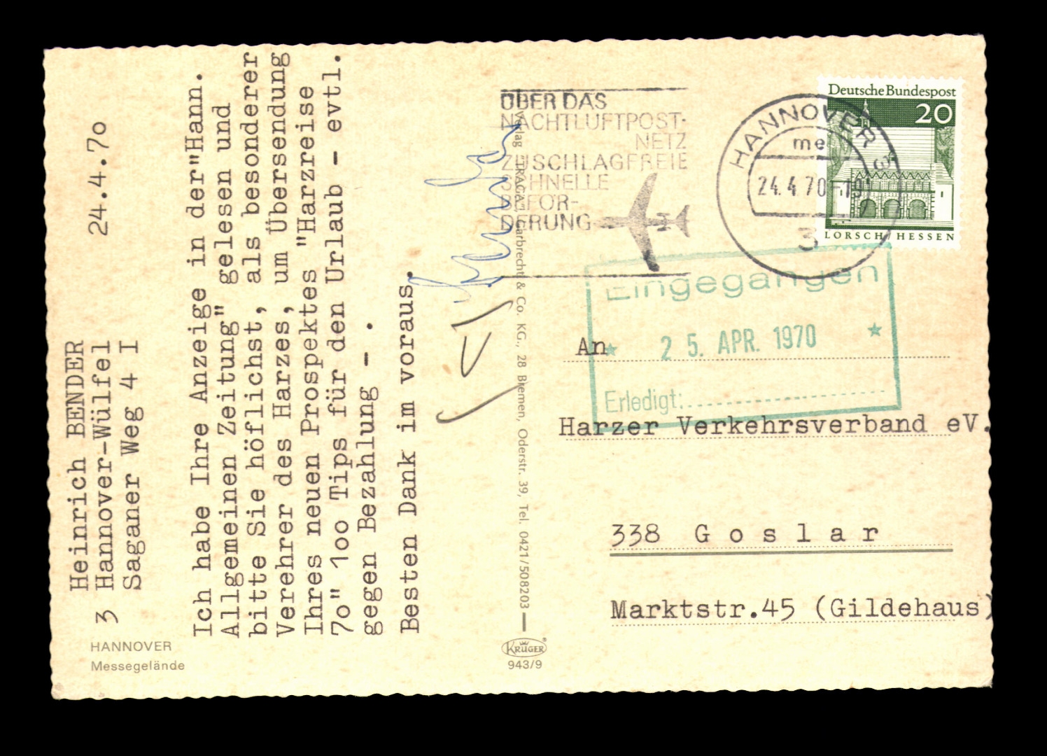 Gelaufen, Ecken bestoßen, leicht fleckig.